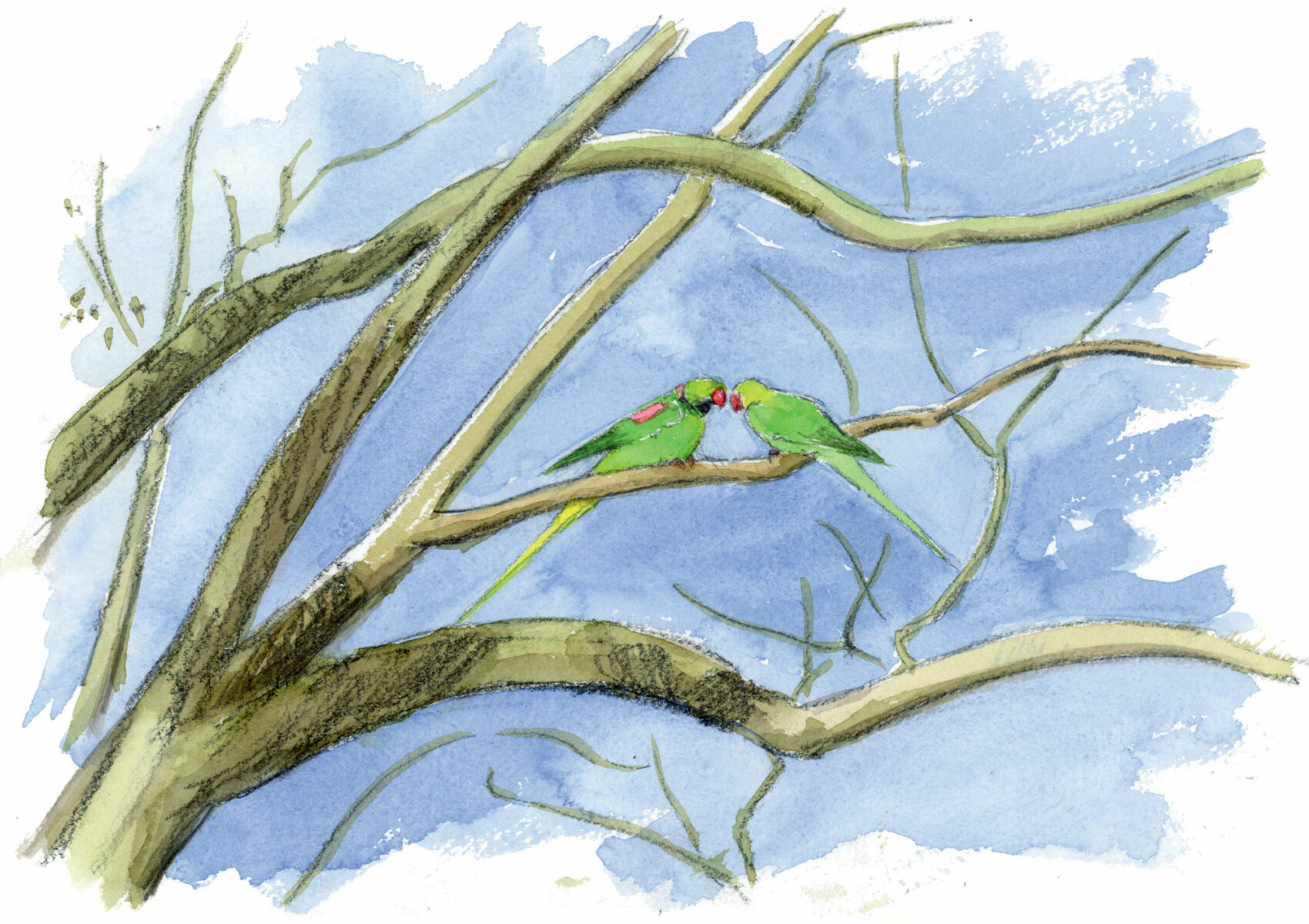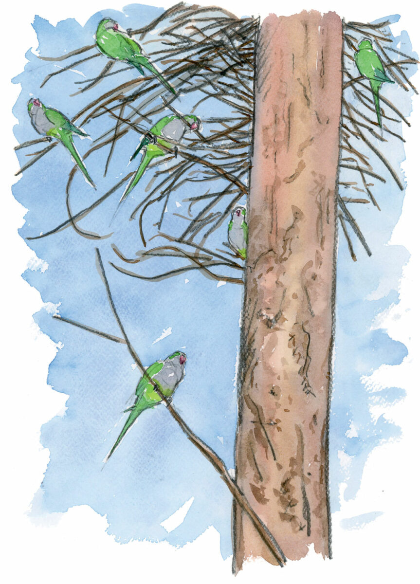 Je me souviens de mon excitation à la sortie de l’aéroport de New Delhi : odeurs nouvelles, arbres tropicaux et cris d’oiseaux inconnus. C’était en février 1997. Un escadron jacassant de flèches émeraude accueillit mes premiers pas sur le sol indien. Des perruches à collier ? Peut-être. Ou bien des perruches alexandre, difficile d’être certain. Vingt-six ans plus tard, la même scène pourrait se répéter dans n’importe quelle métropole européenne. La mondialisation à laquelle j’ai indéniablement contribué s’accompagne en effet d’une inexorable uniformisation des cités, de leurs parcs urbains, enseignes, modes vestimentaires, designs architecturaux et bandes sonores animales. Bruxelles, Berlin, Barcelone, Toulouse, Paris ou Lille… chacune de ces villes accueille des perruches par centaines.