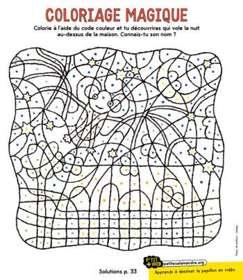 À tes crayons de couleurs ou tes feutres pour deviner qui se cache derrière ce coloriage magique... Tu veux un indice ? Elle aime bien voler la nuit... Et les soir d'été, quand il fait encore bon, tu peux l'apercevoir.