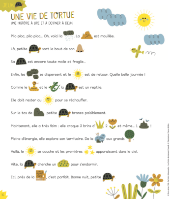 Il est temps d'aller se coucher... Et si tu demandais à papa ou maman de lire une histoire à deux ? C'est l'histoire d'une journée dans la vie d'une tortue...