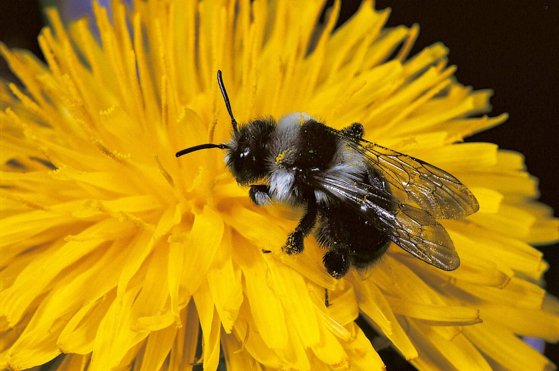 Mâles ou femelles, toutes les abeilles recherchent le nectar comme source d’énergie. Mais la collecte de pollen, souvent limitée à un type précis de fleur, est la tâche exclusive des femelles. En d’autres termes, une abeille aux pattes ou à l’abdomen alourdis d’une récolte jaune est forcément de sexe féminin. Les mâles n’ont ni brosses, ni corbeilles.