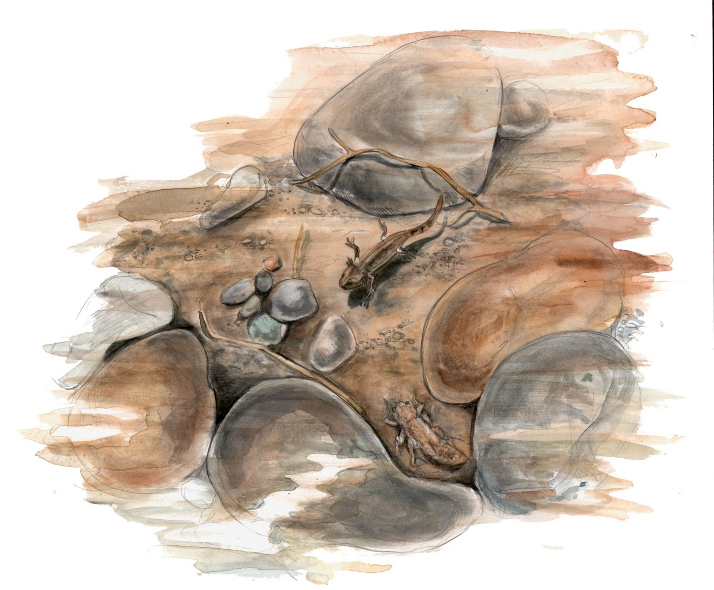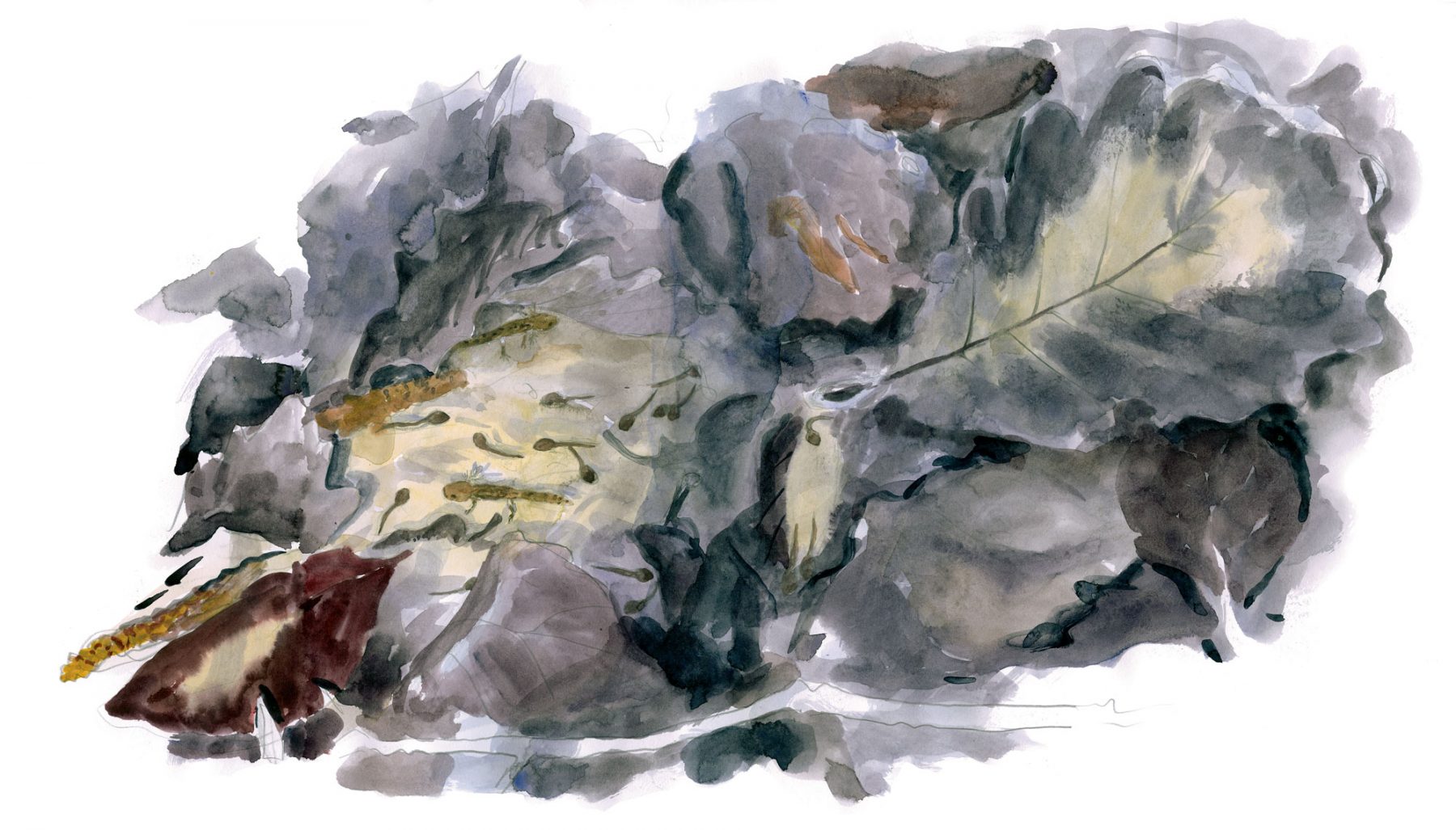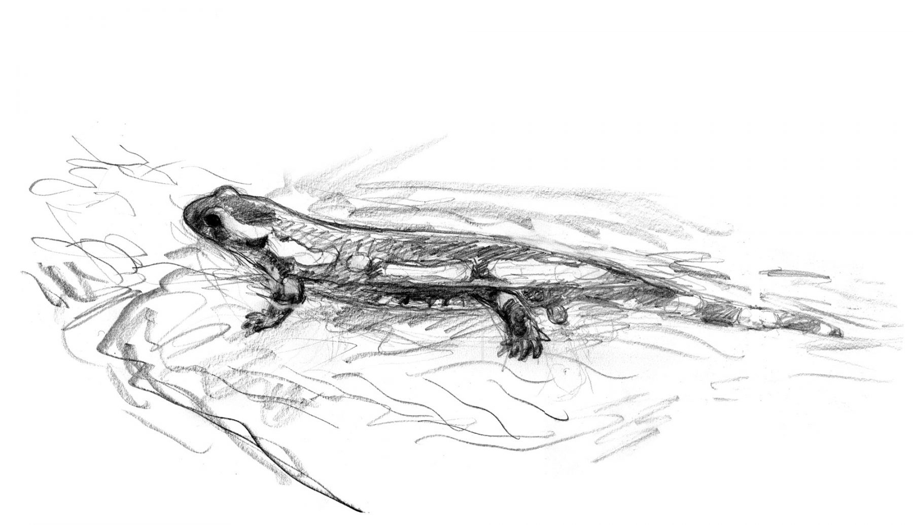 Un souvenir de salamandre ? En cherchant des chauves-souris dans d'anciennes mines, j'ai trouvé des salamandres au fond de la terre. Et même une fois des larves à plus de 200 mètres de l'entrée. Cet animal est un sujet sans limites pour le peintre.