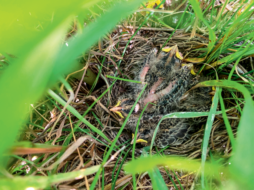 « Pour mieux le protéger, il faut investiguer sur sa biologie, le régime alimentaire des poussins ou la date de leur premier envol », détaille Ludovic Bradley, qui étudie ces questions durant son travail de master en biologie, à l’Université de Neuchâtel. Pour récolter des informations, l’étudiant navigue avec précaution entre les céréales, guidé par ses compères au talkie-walkie, afin de poser de petites caméras à une trentaine de centimètres des nids. Le dérangement est bref et le dispositif permettra de générer des dizaines de milliers de photos à analyser. S’il reste encore beaucoup à découvrir, une chose est sûre : le bruant proyer disparaît en raison de l’intensification des pratiques agricoles. Ses nids sont notamment à la merci des faucheuses. « L’an passé, on a tenté de les localiser et de les protéger. Une petite dizaine a été sauvée, mais c’était un investissement de fou », explique Robin. Le projet se concentre désormais sur des mesures à long terme se passant d’une intervention coûteuse en ressources humaines : le renforcement d’habitats attractifs et sécurisés.