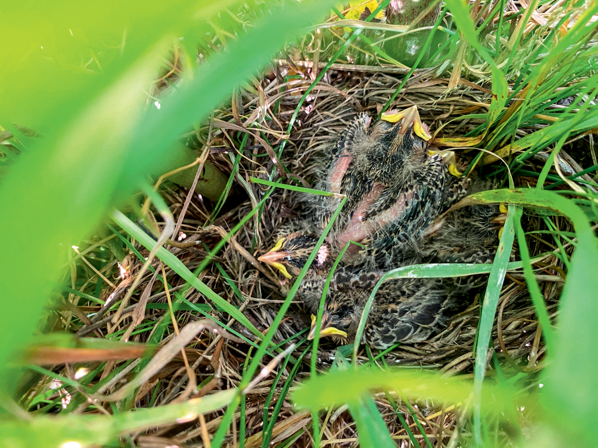 « Pour mieux le protéger, il faut investiguer sur sa biologie, le régime alimentaire des poussins ou la date de leur premier envol », détaille Ludovic Bradley, qui étudie ces questions durant son travail de master en biologie, à l’Université de Neuchâtel. Pour récolter des informations, l’étudiant navigue avec précaution entre les céréales, guidé par ses compères au talkie-walkie, afin de poser de petites caméras à une trentaine de centimètres des nids. Le dérangement est bref et le dispositif permettra de générer des dizaines de milliers de photos à analyser. S’il reste encore beaucoup à découvrir, une chose est sûre : le bruant proyer disparaît en raison de l’intensification des pratiques agricoles. Ses nids sont notamment à la merci des faucheuses. « L’an passé, on a tenté de les localiser et de les protéger. Une petite dizaine a été sauvée, mais c’était un investissement de fou », explique Robin. Le projet se concentre désormais sur des mesures à long terme se passant d’une intervention coûteuse en ressources humaines : le renforcement d’habitats attractifs et sécurisés.