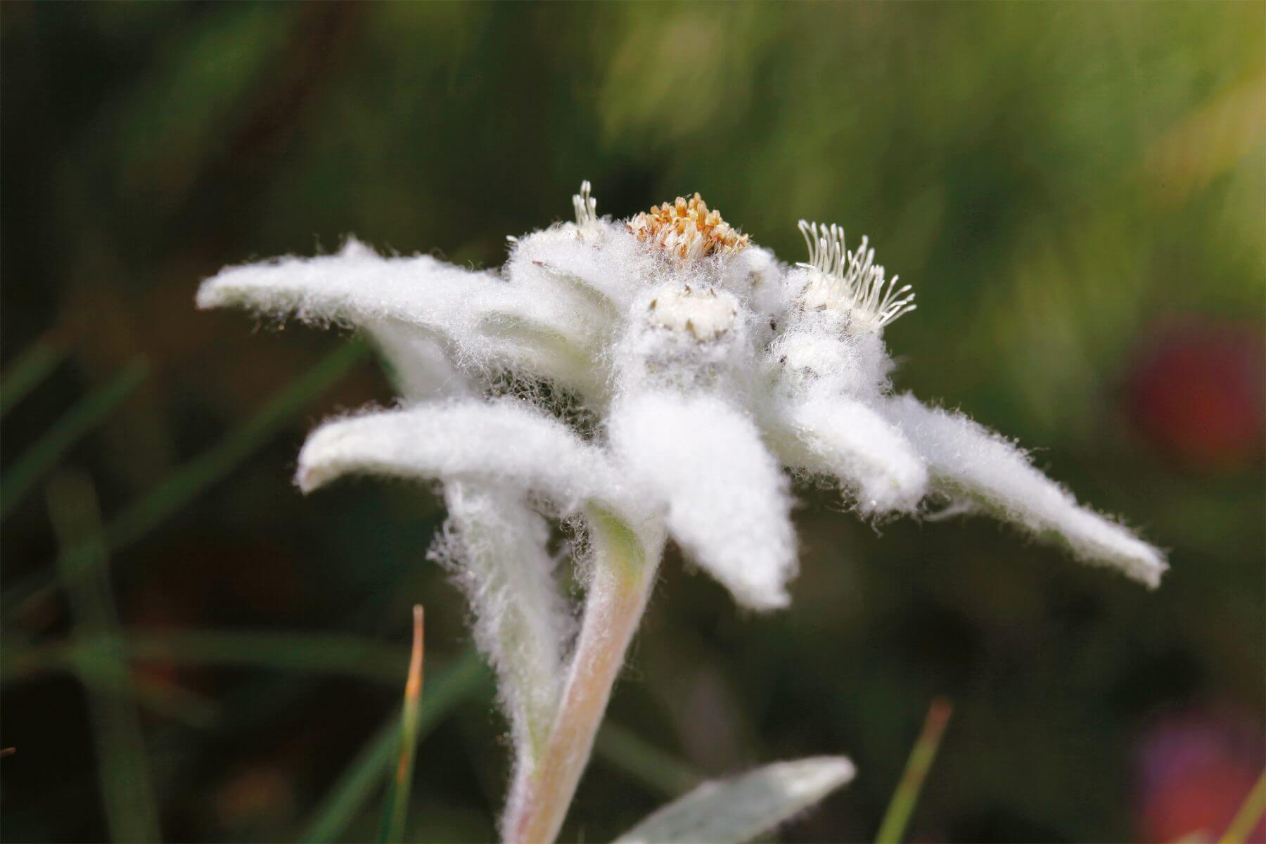 La fleur de l'edelweiss ne quitte pas son tricot adapté au climat montagnard. Il la met à l'abri du froid, du dessèchement et du rayonnement solaire agressif. Sa blanche laine réfléchit la lumière visible et neutralise les ultraviolets en les absorbant. Un exploit qui serait dû à la finesse de ses fibres.