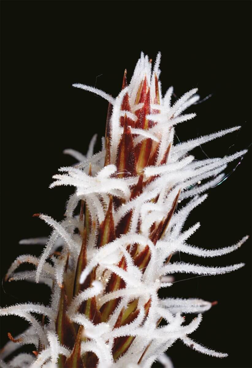 Discrètes, les fleurs femelles des laîches méritent qu'on se penche sur elles. Leurs pistils ramifiés en trois branches charnues sont couverts de poils collants. Une pilosité éphémère qui capte dans les airs les semences des fleurs mâles, situées plus haut sur la plante.