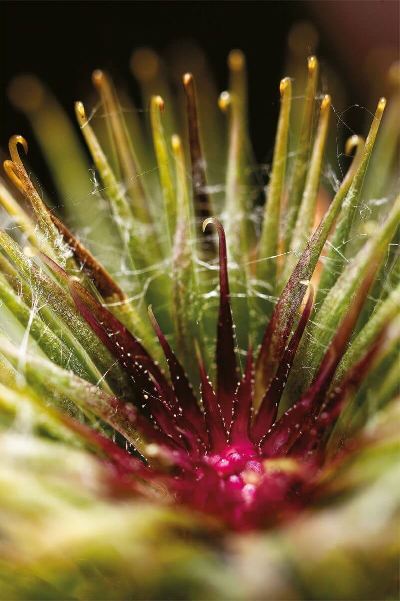 Depuis la tige jusqu'aux fleurs, le cirse laineux invite à la caresse. Sa moelleuse couverture le garde de la sécheresse et du froid. Mais gare à vos doigts : cette astéracée darde de redoutables épines. Seul le bourricot risque ses babines à goûter au « chardon d'âne ».