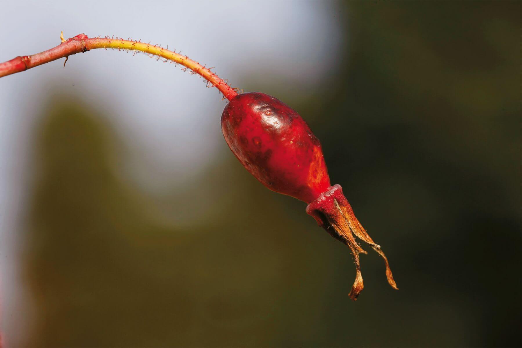 Pas de roses sans épines ? Le rosier des Alpes possède de simples poils modifiés en aiguillons mous ou en appendices collants. Ses fruits, par contre, ne manquent pas de piquant. Les petits farceurs connaissent bien le secret des « gratte-cul ». Ils les ouvrent pour en extraire le feutrage argenté qui enrobe les graines. Glissées dans le col d'une malheureuse victime, les fibres aux extrémités aiguës entraînent de désagréables démangeaisons.