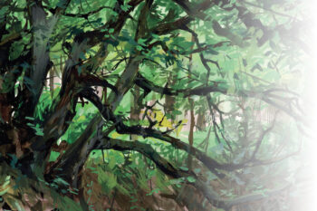 Entre peinture, plongé dans l’histoire très ancienne d’une forêt et rencontre avec la nature, le peintre nous raconte comment il s’est immergé une année en osmose avec la nature.