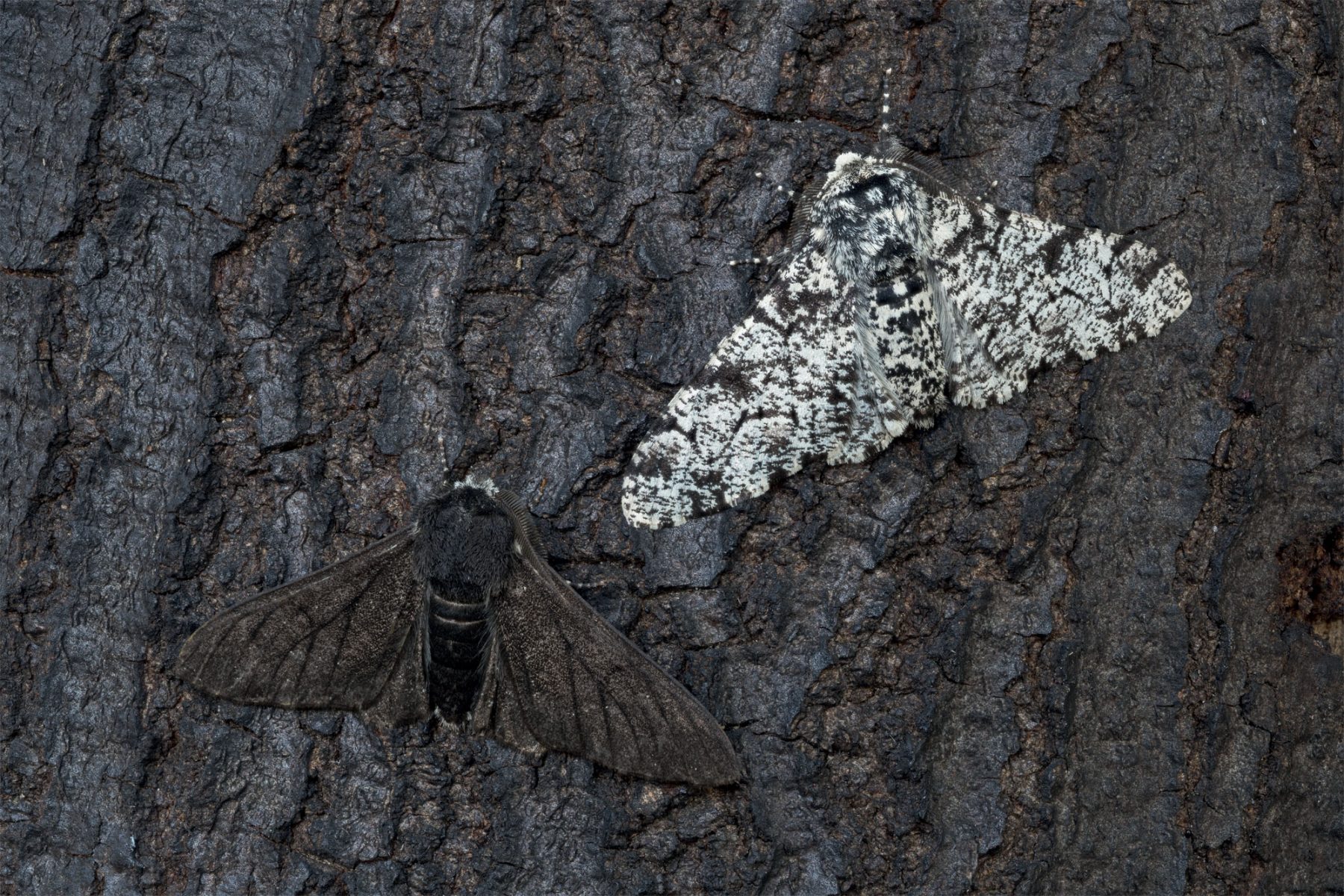 Tout commence en 1848 quand l’un de ces papillons est capturé dans le filet d’un entomologiste à Manchester. Etonnamment, la bête présente une coloration noire au lieu de sa livrée habituelle blanche mouchetée. Un siècle plus tard, 90 % des phalènes de plusieurs villes d’Angleterre arborent cette forme sombre. A l’époque, les usines tournent à plein charbon en recrachant par leurs cheminées sans filtre d’énormes quantités de suie. La pollution noircit les écorces des arbres tout en tuant les lichens clairs qui les tapissent. Le lien paraît évident entre la forme noire du papillon et l’industrialisation. On parle alors de mélanisme industriel.