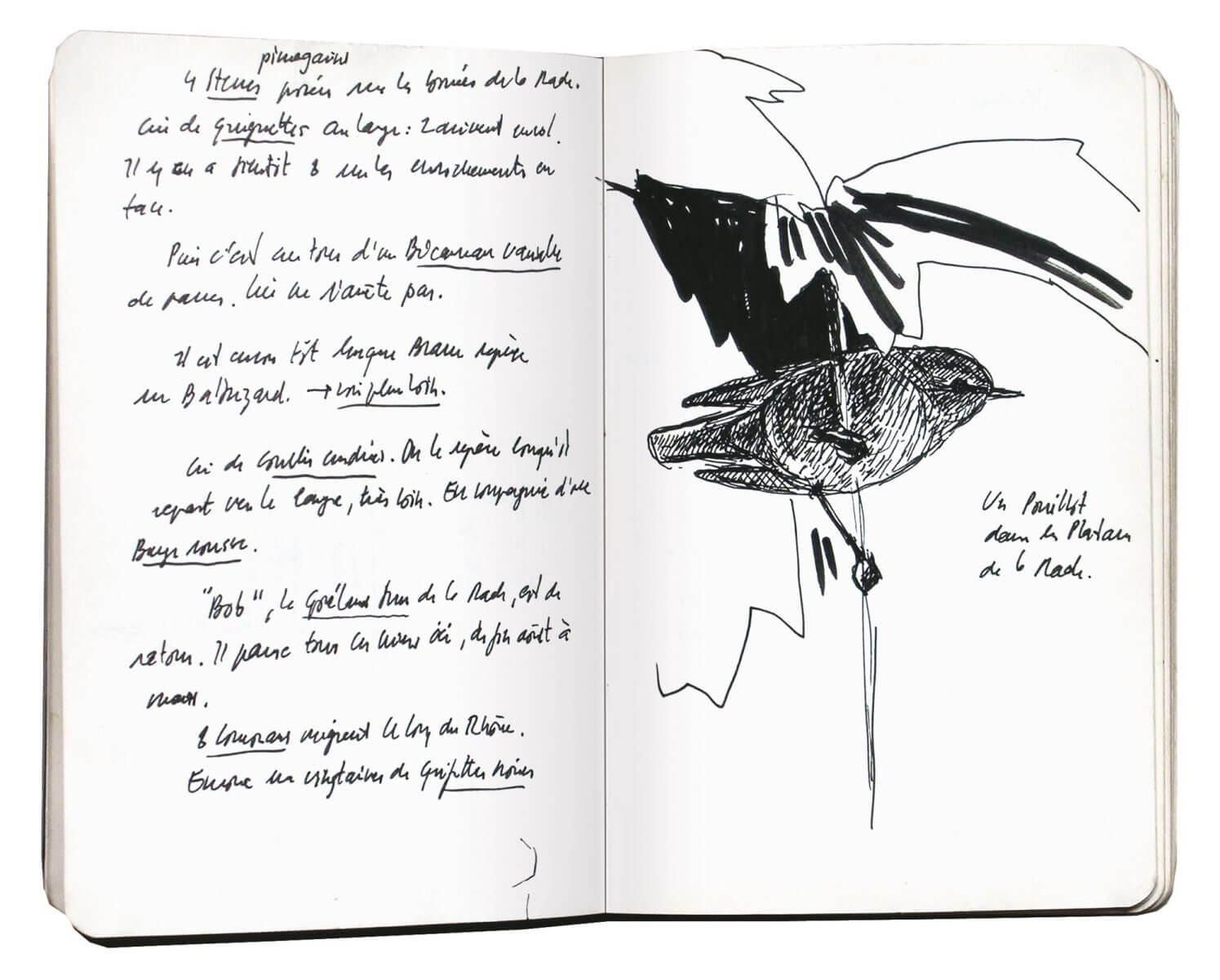 Rideau de pluie ce matin. Clapotis des gouttes sur le bord de la fenêtre entrouverte. Un pouillot fitis à l’abri derrière les feuilles luisantes d’un saule, le geste lent et le plumage gonflé, est arrivé à la même constatation que moi : mieux vaut repousser encore d’un jour le départ tant attendu. Voilà bientôt une semaine qu’il pleut. Les migrateurs sont cloués au sol.