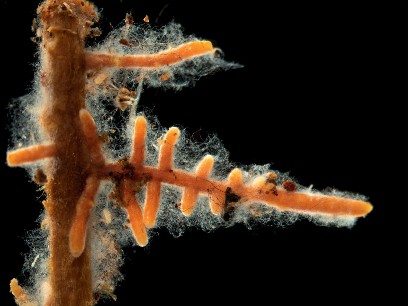 D’innombrables alliances se déploient dans et autour des racines des arbres, sous forme de mycorhizes avec des champignons ou de nodosités avec des bactéries. Les champignons ravitaillent la plante en eau et en sels minéraux contre des sucres produits par photosynthèse. Les bactéries, elles, fixent l’azote atmosphérique sous une forme assimilable par les arbres. Les champignons peuvent aussi anéantir des pathogènes ou empêcher des métaux lourds et des minéraux toxiques d’atteindre la plante.