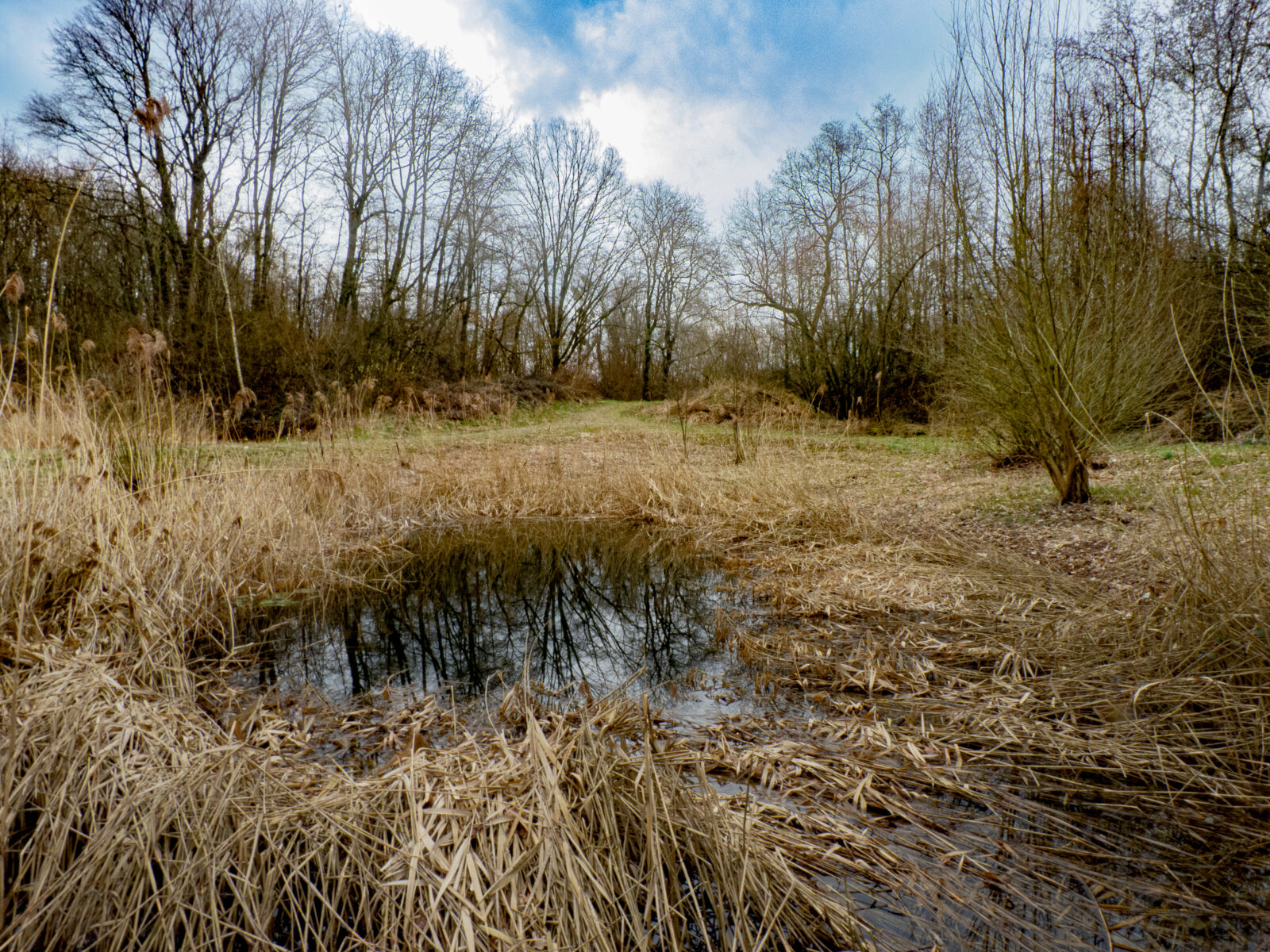 Sur la berge du Neuf-Etang, un observatoire permet d’admirer les oiseaux qui apprécient le plan d’eau. Quelques harles bièvres nagent tranquillement à la limite des roseaux. Un jeune héron somnole, perché sur une branche morte. « Des bécassines et des chevaliers s’arrêtent parfois ici sur leur route migratoire, ajoute Patrick, les yeux vissés aux jumelles. Le second cabanon, qu’on aperçoit sur la rive d’en face, est un bon coin pour voir le martin-pêcheur de près. »