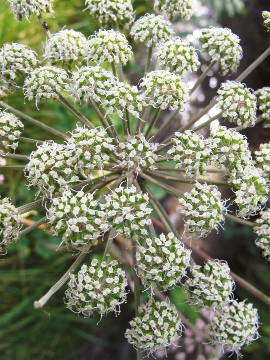 L'angélique des bois est une herbacée vivace qui s'épanouit l'été dans les clairières et les vallons humides. Rare en région méditerranéenne comme en Valais, elle profite de la présence du bisse pour faire quelques apparitions. L'apiacée peut vivre plusieurs années mais ne fleurit qu'une fois et meurt lorsque les graines sont arrivées à maturation.