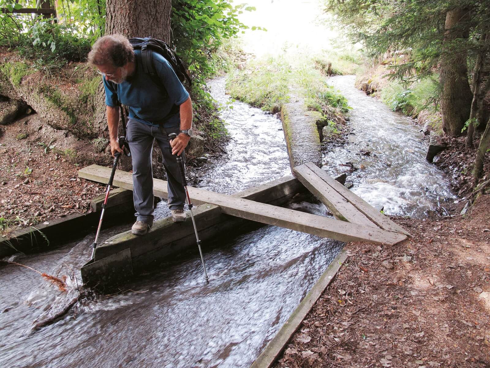 Mais pour l'instant, l’angélique des bois expose encore ses larges ombelles au-dessus de l'eau laiteuse chargée de sels minéraux. D'autres êtres profitent aussi de la manne liquide. Bien qu’artificiel, le cours d’eau offre un abreuvoir providentiel aux chevreuils, sangliers et renards. Ils se régalent aussi des herbes tendres qui poussent sur les rives. Le randonneur, lui, aura découvert un compagnon qui surprend et envoûte : ce bisse qui offre une respiration au cœur de l'étuve.