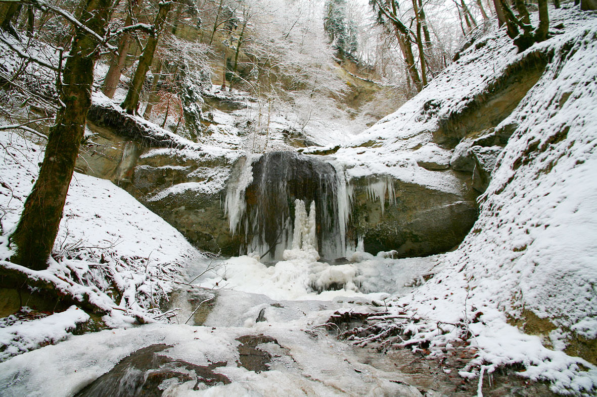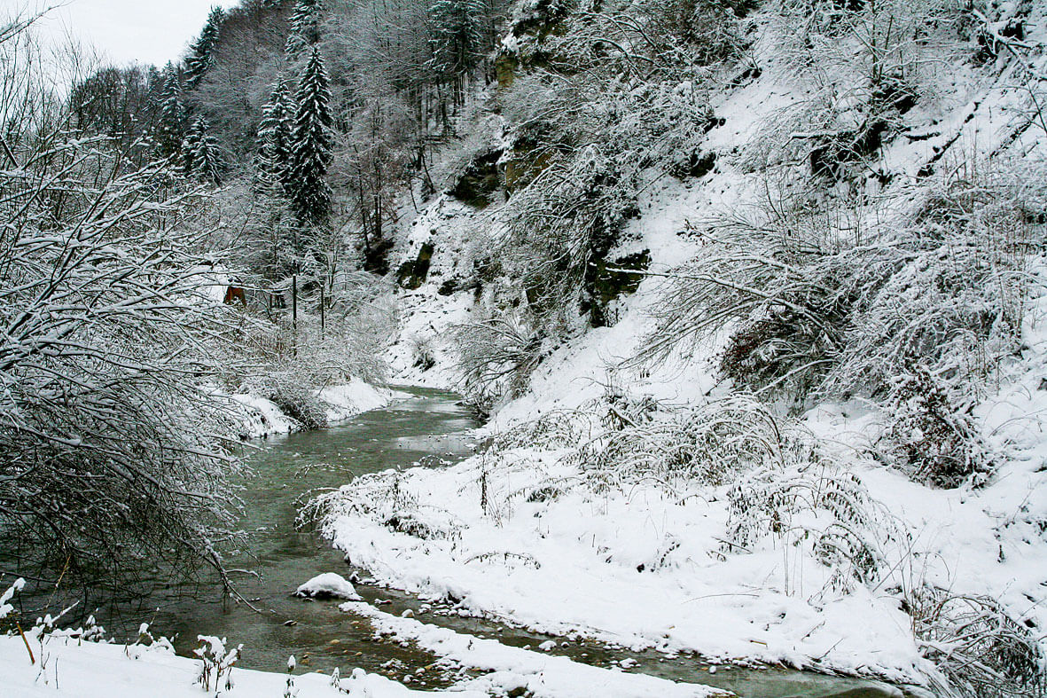 Le Gottéron a quelque chose d’effacé et de silencieux, comme un vieil ermite à l’écart du tumulte citadin. Il tutoie la ville, s’en éloigne à peine d’un jet de pierre pour se soustraire à la présence des hommes, sans l’oublier tout à fait, à l’instar de ce renard dont les flâneries sont venues zébrer la neige fraîche. Dans cette vallée secrète, les mystiques médiévaux ont su trouver sans nul doute paix et méditation comme le rappelle soudain, dans un souffle de vent, le carillon de l’abbaye voisine de la Maigrauge.