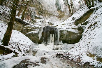 **Les dépôts de tuf **« En suivant le sentier qui longe le Gottéron, vous allez rencontrer de magnifiques dépôts de tuf. A l’endroit où l’eau ruisselle lentement, le calcaire qu’elle contient se dépose pour former de véritables dentelles de rocher. Vous pourrez même y découvrir, à la belle saison, la grassette, une plante carnivore. »