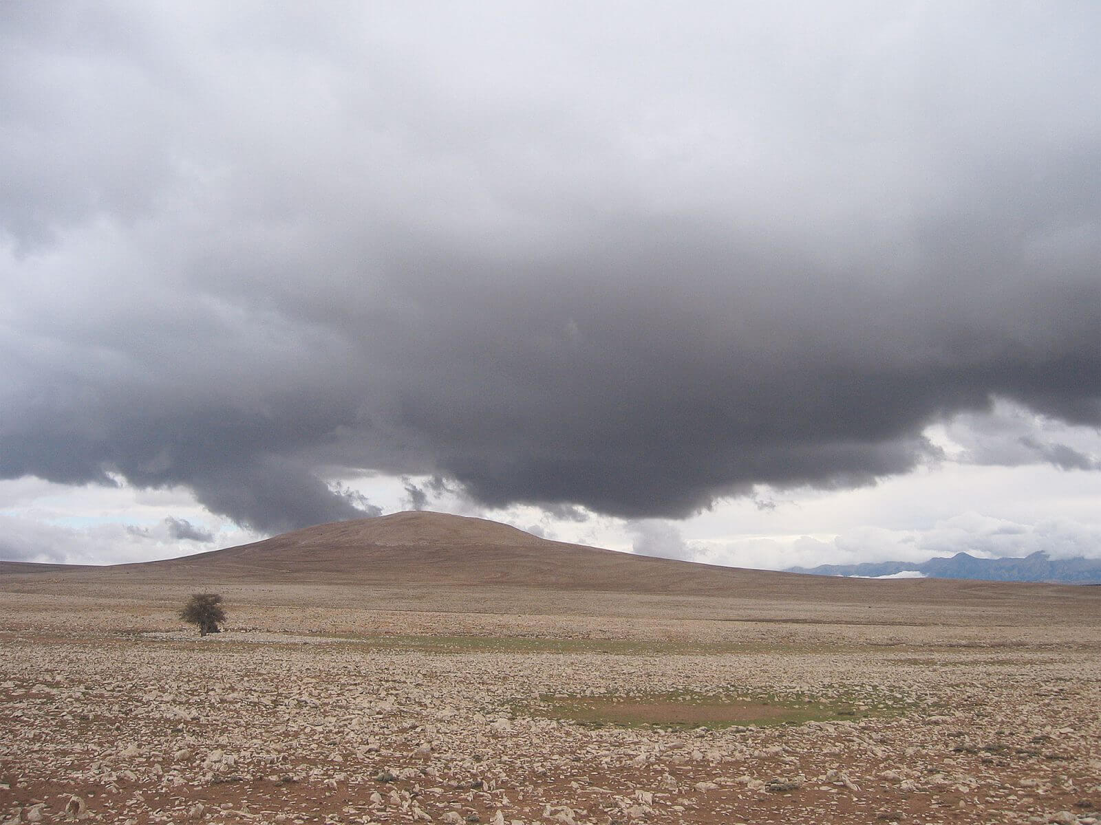 Une fois les derniers hauts cols passés, l’Atlas s’ouvre sur des étendues caillouteuses à perte de vue. Des cailloux. Rien que des cailloux. Et parfois, au milieu du paysage désertique, la fraîcheur d’une vallée verdoyante. Avec en ligne de fond les contreforts du Djebel Sarhro.
