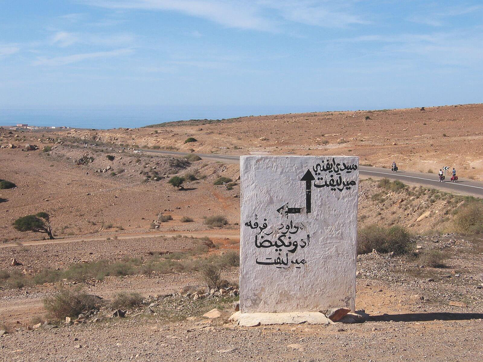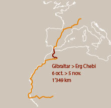 Aucune route ni aucun itinéraire ne traverse le Sahara ici, à proximité de la frontière algérienne. Reste à regagner le littoral atlantique et ses arganiers pour continuer vers le Sahara occidental et la Mauritanie. Quelques bourgades, souvent séparées par des centaines de kilomètres, sonnent sur la carte comme autant de promesses et d’espoirs: Tan-Tan, Tarfaya, Laâyoune, Dakhla. Le désert. A gauche. A droite. Et droit devant. Le désert sur des milliers de kilomètres.