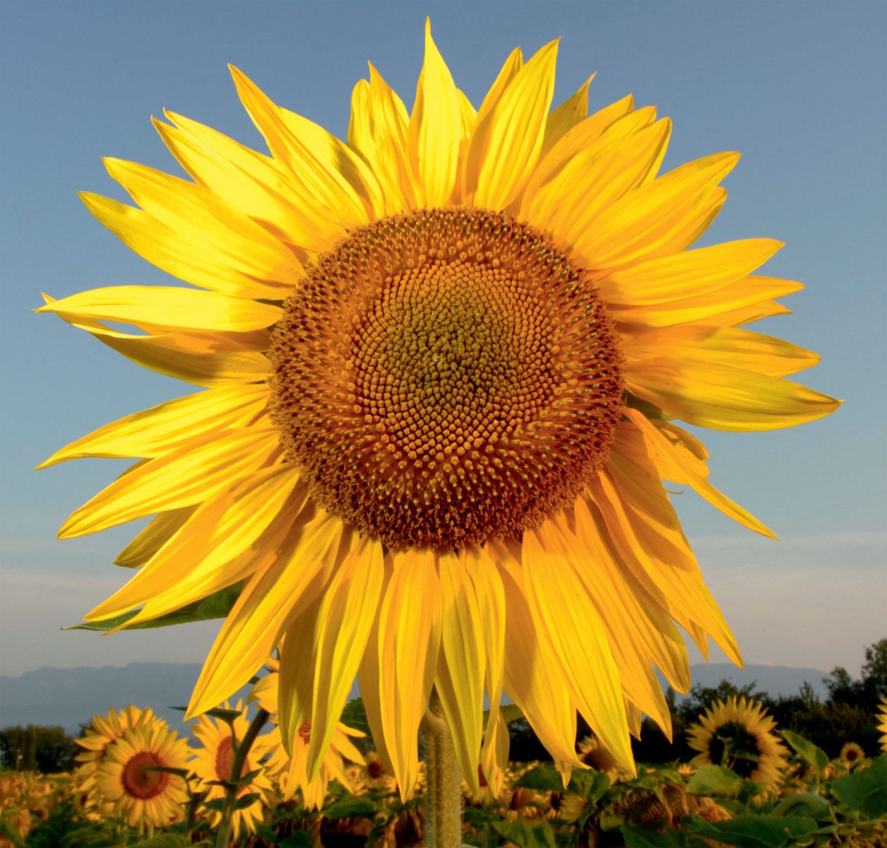 Il y a quatre mille ans, plusieurs peuples amérindiens commencent à cultiver une grande plante annuelle aux graines riches en matière grasse : le tournesol. Son nom français vient de l’espagnol girasol, autrement dit qui tourne avec le soleil, allusion au mouvement quotidien de ses feuilles qui suivent la course de l’astre. En revanche, une fois éclos, le capitule floral s’oriente définitivement vers l’est. Importée en Europe au XVIe siècle par les Espagnols, la fleur soleil est d’abord cultivée comme plante d’ornement avant que l’on ne s’intéresse à ses graines. Avec le colza et l’olivier, c’est aujourd’hui l’une des trois sources principales d’huile alimentaire en Europe.