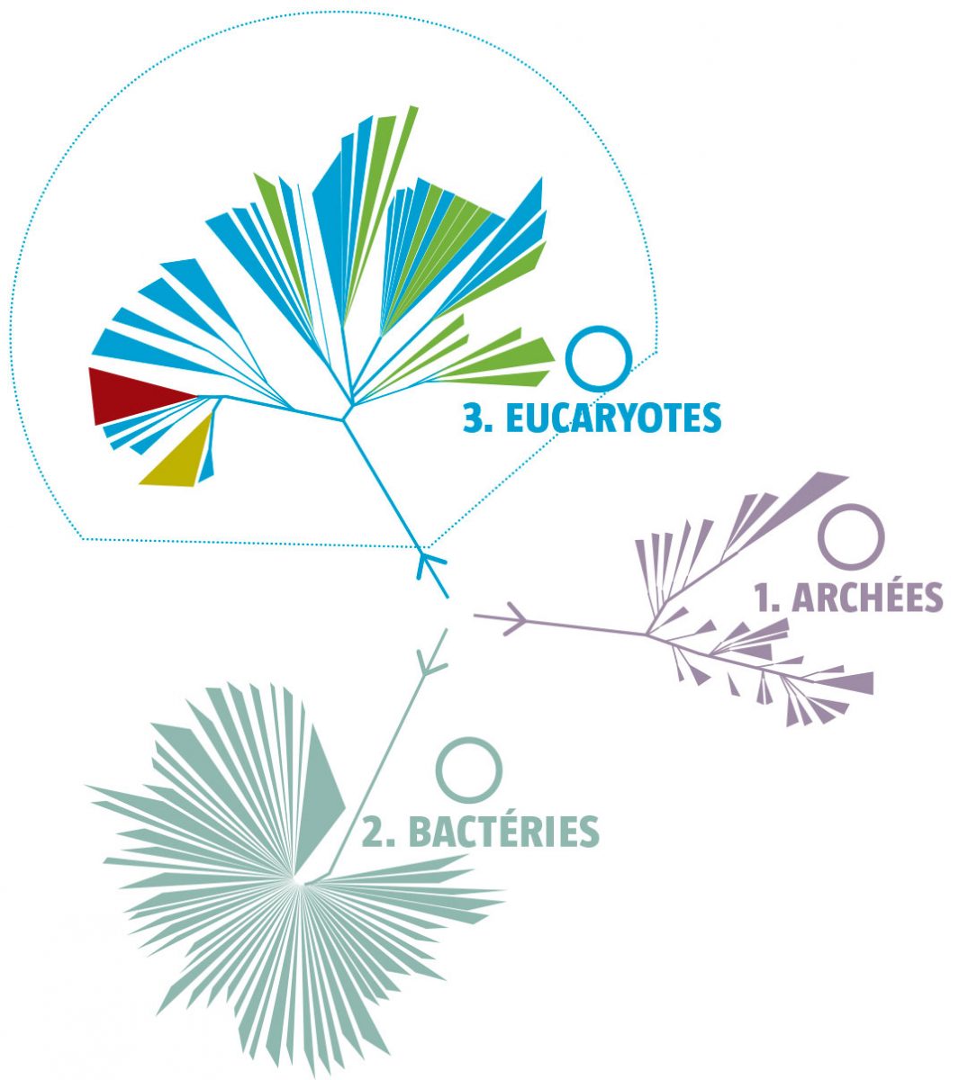 - 2 Les branches de l’arbre qui comptent des organismes pluricellulaires comme nous et qui sont donc visibles à l’œil nu sont ultra-minoritaires.