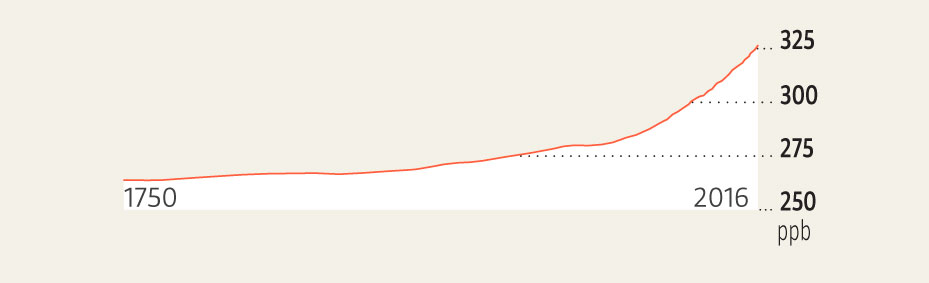 - Particularité : une seule molécule contribue à l’effet de serre comme 200 molécules de CO2. Persiste des millénaires dans l’atmosphère.