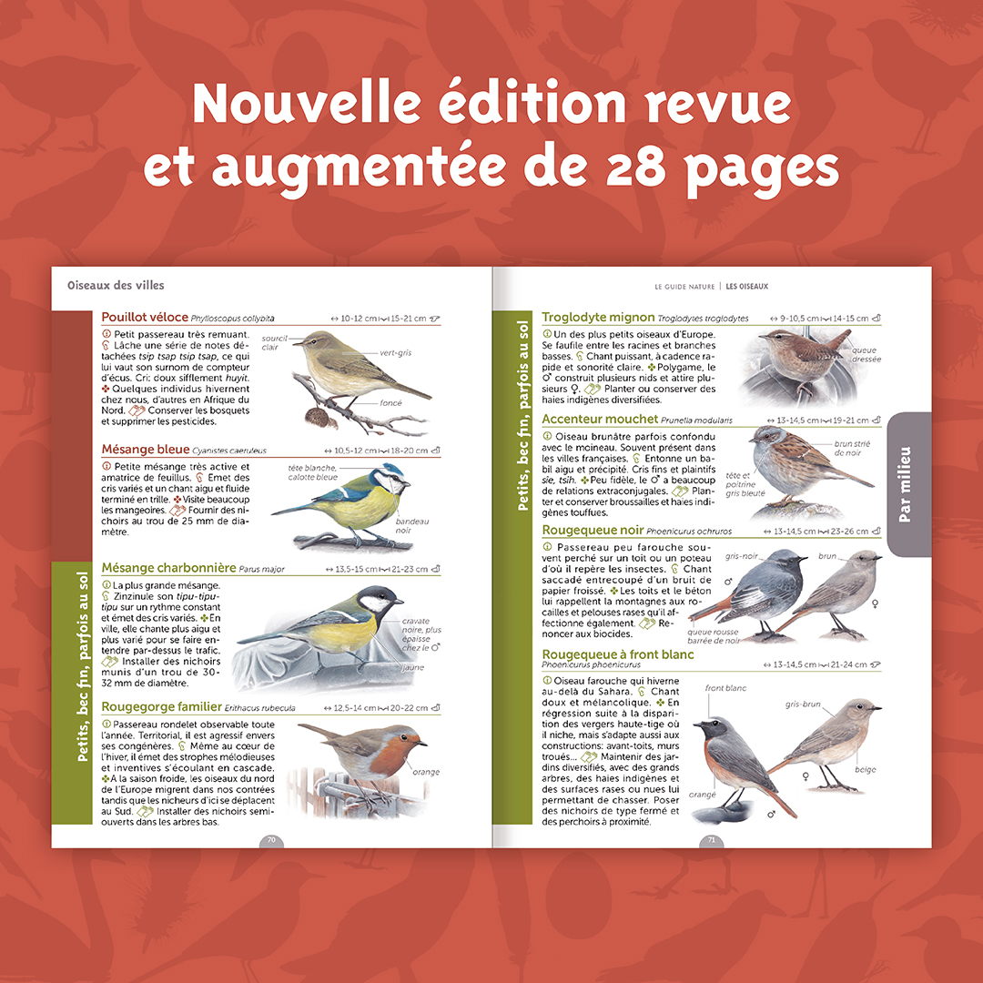 Si vous voulez en savoir plus et devenir expert dans l'art de reconnaître les oiseaux, nous vous recommandons ce super Guide nature Les Oiseaux, édité par la Salamandre.