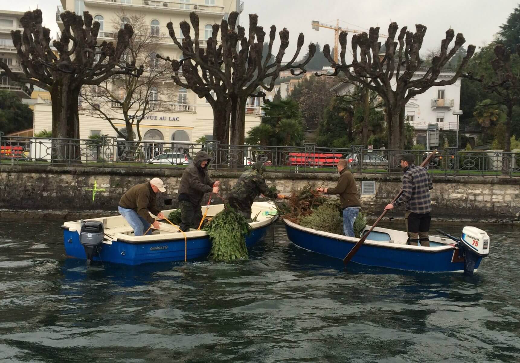 Au Tessin, cette activité est devenue une tradition pour l'association de pêche du golf de Lugano. Depuis plus de vingt ans, ils récoltent chaque année entre 100 et 150 arbres !