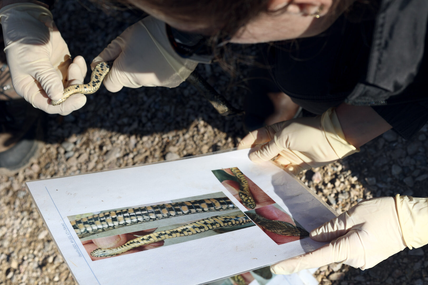 Ce matin d’automne, c’est enfin le grand jour auquel une vingtaine de bénévoles participent. « Il faut identifier chaque spécimen pour le relâcher exactement où il a été prélevé. » Ce défi est possible grâce à un damier d’écailles noires et jaunâtres, propre à chaque individu, qui dessine un QR Code naturel. Après quelques bains de soleil, les reptiles devront rapidement s’enfouir pour l’hiver. « Nous gardons 14 serpenteaux parmi les plus petits au muséum, maintenus cinq mois à 7 °C. Cette expérience sera utile si nous devons recourir un jour à de la captivité pendant la saison froide, prévient Frédéric Maillot, nous les libérerons au printemps prochain. »