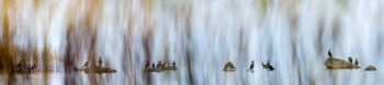 J’ai toujours eu ce désir de m’approcher, d’être au plus près d’eux. Un jour, j’en ai eu assez de les photographier depuis la rive. J’ai voulu avoir un point de vue original, à fleur d’eau. J’ai construit mon premier affût flottant et là, tout a changé. C’était l’euphorie, je me disais « je suis enfin un canard » (rires). J’étais fasciné par la lumière que je découvrais, en étant dans l’eau, les ombres disparaissent, le lac est un superbe miroir géant.