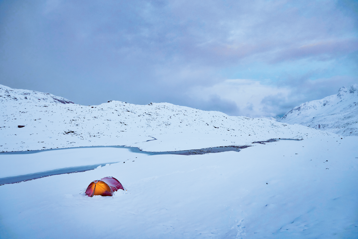 Chaque année, c’est un projet qui est demandeur physiquement, car porter tout le matériel photo, la nourriture, les vêtements chauds et la tente n’est pas une mince affaire lorsqu’il faut marcher dans la neige. Bien que je redescende souvent dans la vallée le soir, il m’arrive de camper dans le blanc des montagnes. La météo est tantôt clémente, tantôt capricieuse. Mais même sous un bel anticyclone, je ne trouve pas toujours signe de leur présence. Lorsque la tempête fait rage, le vent peut souffler jusqu’à 80 à 100 km/h. Les bouquetins se réfugient alors près des falaises, ce qui permet de les approcher sans se faire repérer en longeant les parois rocheuses.