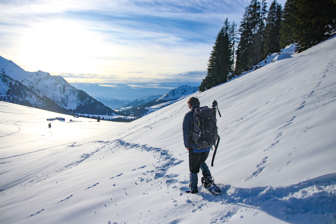 Déjà plusieurs heures que se succèdent marche en raquettes dans la poudreuse et longues pauses à scruter de vastes parois rocheuses. Quand Célestin Luisier, coordinateur en Suisse romande pour la fondation Pro Gypaète, visualise enfin le poste d’observation idéal. La chaîne des Préalpes vaudoises s’offre au regard, tandis qu’un renard sautille dans le dénivelé avec une aisance enviable. L’ornithologue veut savoir si un jeune couple de gypaètes barbus, aperçu transportant des branches en octobre, a bâti son nid dans la face nord du massif environnant.