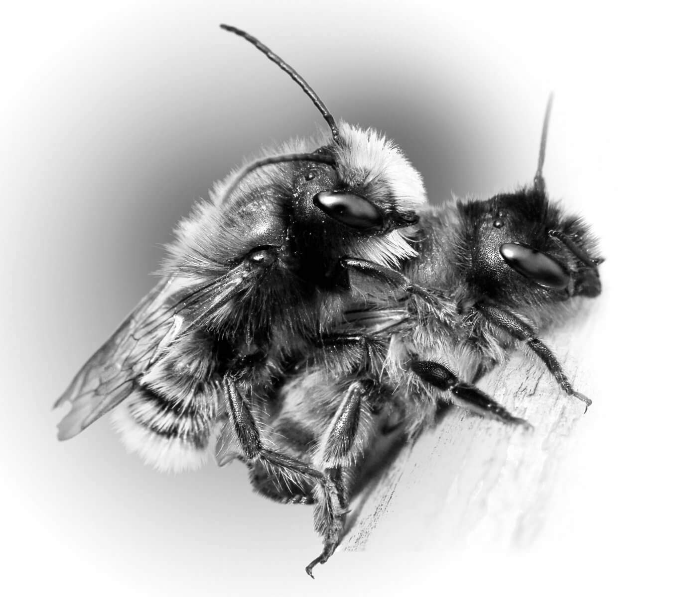 Chez l’osmie cornue (> ci-contre), la saison des accouplements est de très courte durée. Contrairement à l’abeille domestique, cet hyménoptère n’a pas de vie sociale. Chaque femelle pond ses œufs au fond d’une galerie. Les adultes écloront presque une année plus tard, sans avoir jamais connu leurs géniteurs.