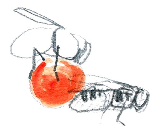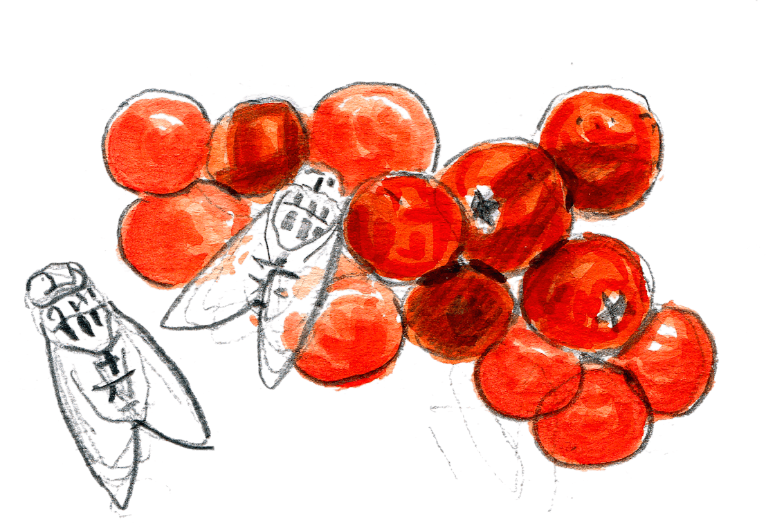 Alors que les feuilles se mettent à tomber, des mouches attirées par le sucre s’agglutinent sur les fruits mûrs. Heureusement, le sorbier des oiseleurs est un hôte généreux. Sa table restera dressée tout l’hiver.
