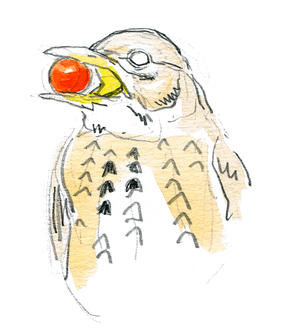 Pourquoi les baies rouges sont-elles si attirantes ? Pour faciliter leur dissémination, pardi ! Une fois absorbée par les oiseaux, la pulpe est digérée mais pas les graines. Celles-ci résistent aux sucs digestifs et ressortent avec les déjections, quelques kilomètres plus loin à vol de grive ou de merle. De plus, la pulpe contient une substance qui inhibe la germination des graines dans le but de prolonger leur dormance hivernale. Mises à nu, elles n’ont plus d’obstacle à leur croissance et sont même enrobées d’un fertilisant bienvenu.