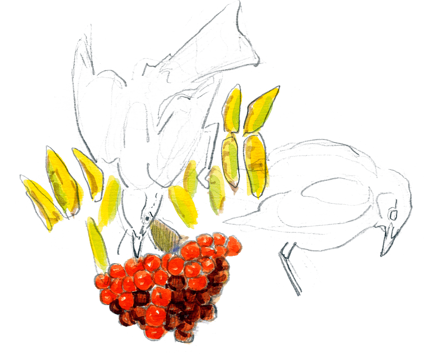 Retour au parc quelques semaines plus tard. Les jours ont raccourci, le temps se fait moins doux. Bienvenue en novembre. Les sorbes allégées par les premiers grappilleurs restent au menu de nombreux oiseaux.