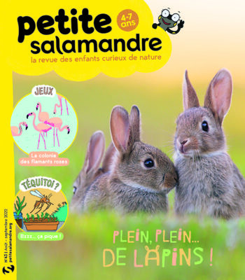En août-septembre 2022, la Petite Salamandre n°43 invite vos enfants ou petits-enfants de 4 à 7 ans à compter les lapins de garenne qui sortent de leur terrier ! À lire nos 8 pages de dossier documentaire dans Plein, plein... de lapins !