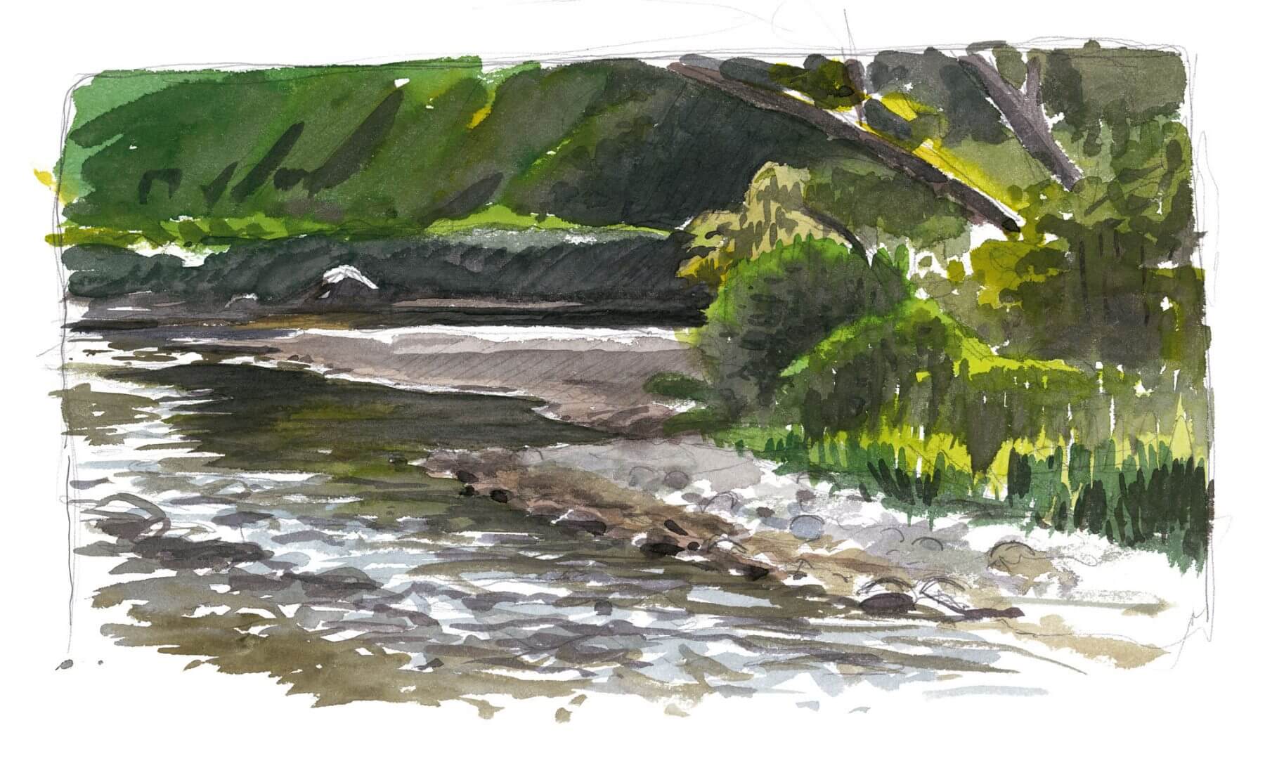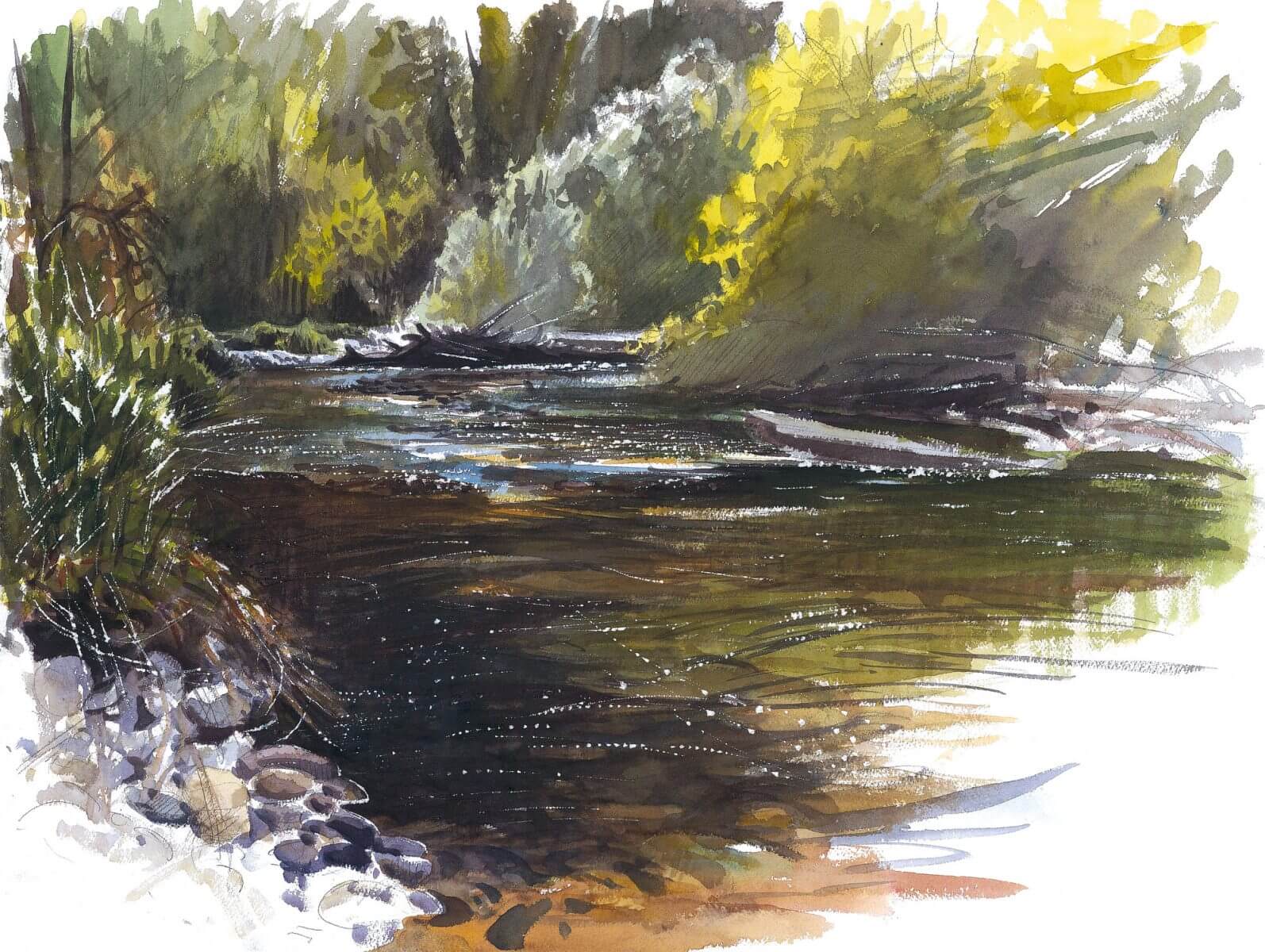Dessins NatureLa rivière en aquarelle de Jérôme Gremaud