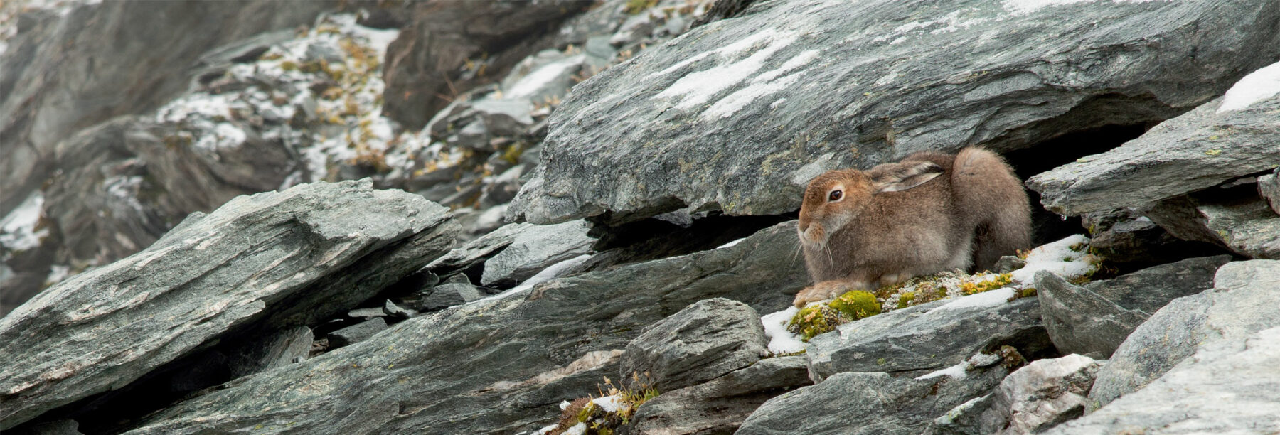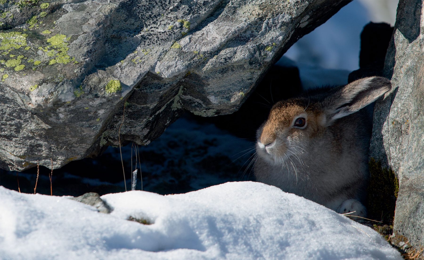 Linné l’avait baptisé Lepus timidus, soit lièvre timide. Certes discret, le lièvre variable est loin d’être craintif. Bon, pour s’en rendre compte, il faut déjà le voir ! Pas simple : brun gris en été, ce mammifère se camoufle entre les rochers et les prairies steppiques alpines. Blanc comme neige à la saison froide, il se fond à la perfection dans la montagne hivernale, tout en brouillant la piste qui conduit à son gîte. Lorsqu’un danger approche, prédateur ou être humain, il se blottit en comptant sur son mimétisme. L’intrus peut passer à côté de lui sans même le voir. Si la situation s’aggrave, le blanchon prend la poudre d’escampette à une vitesse de 50 km/h.