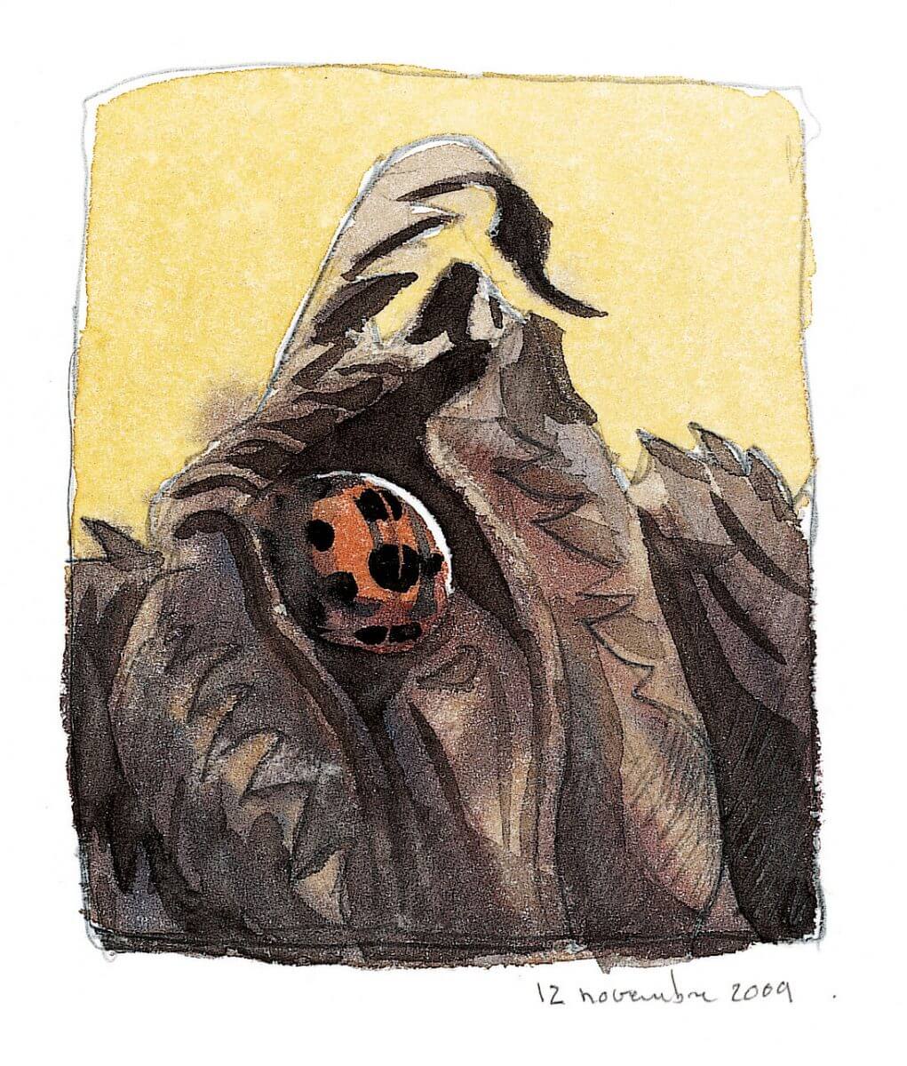 Dissimulée dans une feuille morte, une coccinelle s'apprête à hiberner. Elle peut résister au froid grâce à une augmentation de la teneur en sucres dans son sang : l'homme n'a pas inventé l'antigel !