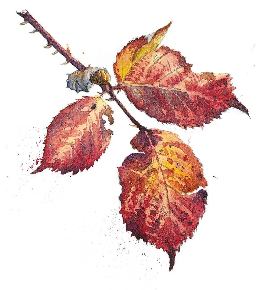 A l'automne, la couleur des feuilles de ronce passe par toute une gamme de tons rouges et or. Cette explosion chatoyante est liée à la disparition de la chlorophylle. Redigéré par la plante, les éléments de ce moteur de la photosynthèse sont récupérés et stockés pour l'hiver. Le retrait de la composante verte laisse apparaître les teintes d'autres pigments : carotènes jaune orangé et anthocyanes rouges. Une fois sèche et brunie, la feuille pourra persister sur la plante ou se détacher.