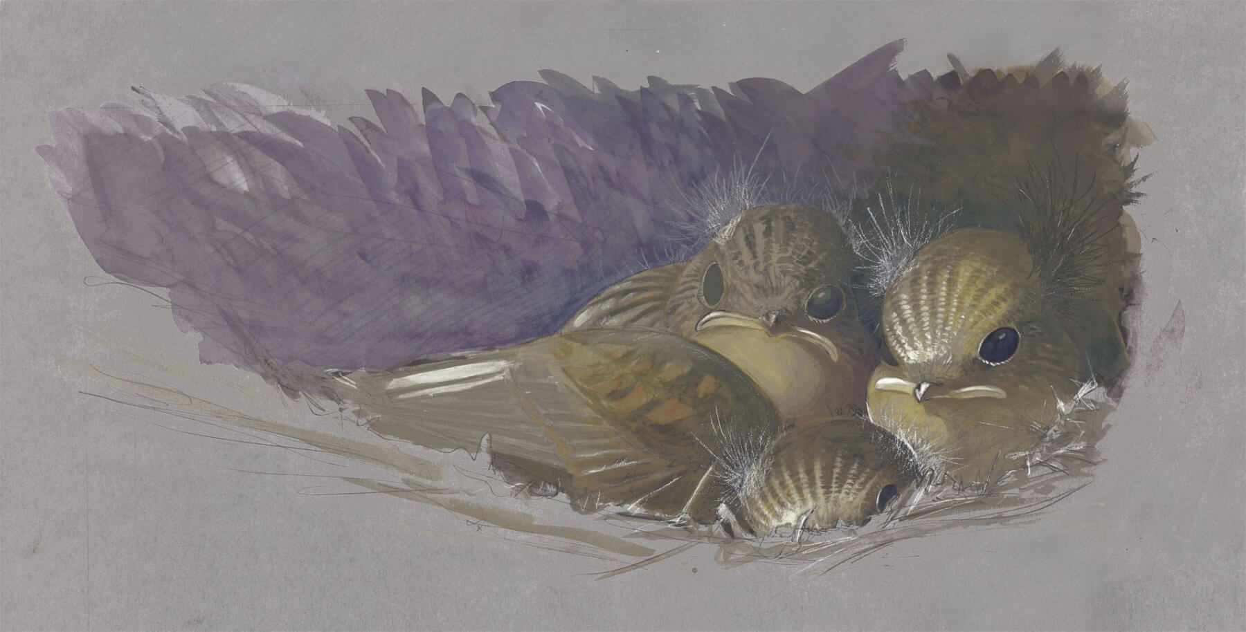 Dessins NatureLe poussin rougegorge grossit de 10 fois son poids en deux semaines