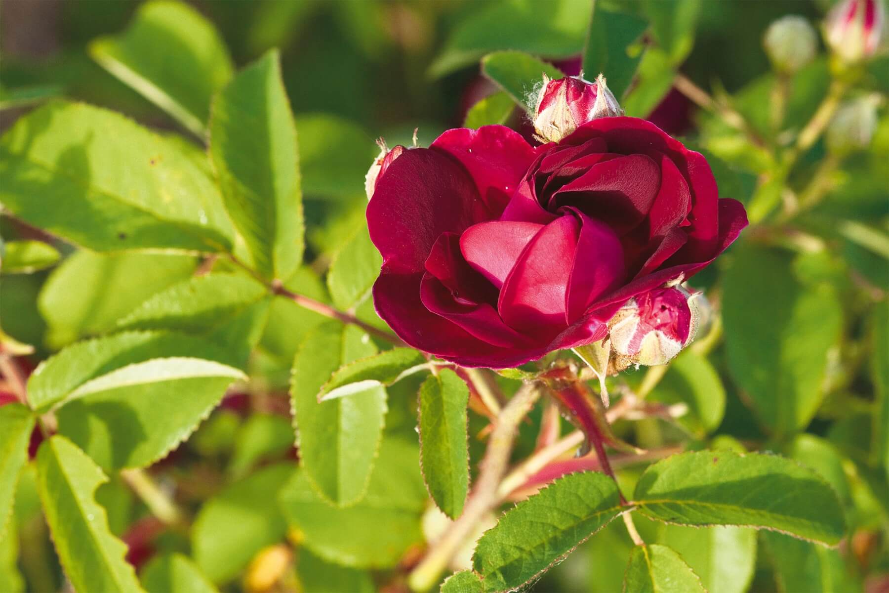 Avec un plaisir certain, Alain Tschanz s'attarde un instant devant un buisson recouvert de grandes églantines aux pétales d'un rose soutenu : « C'est Rosa gallica, le rosier de France, une espèce sauvage dont on retrouve les gènes dans d'innombrables lignées de roses cultivées. » Originaire du Caucase, cet églantier s'est naturalisé en Europe dès l'Antiquité. Il comporte dans sa descendance quelques noms illustres, comme la rose de Provins ou des apothicaires (Rosa gallica officinalis), une variété cultivée dès le XIIe siècle en Champagne pour ses propriétés médicinales. « On doit aussi à cette lignée les roses de Damas (Rosa x damascena), des hybrides connus depuis des millénaires en Orient à l'origine de l'eau de rose et de l'essence de rose. »