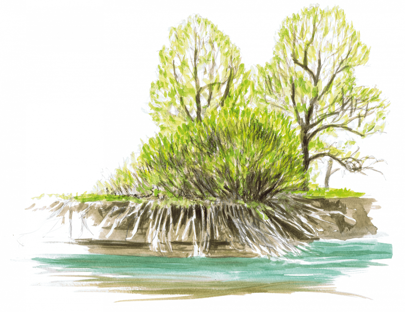 Certaines sont même indifférentes à des inondations prolongées. Arbre pionnier par excellence, le saule produit des graines légères capables de parcourir de grandes distances grâce au vent. Mais, dépourvues de réserves nutritives, elles n’ont que deux jours pour germer sur un sol impérativement nu et humide comme un banc de gravier. Une fois installées, les pousses produisent des racines à une vitesse effrénée.
