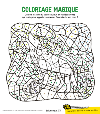 Colorie à l’aide du code couleur et tu découvriras qui hurle pour appeler sa meute... À tes crayons de couleurs !