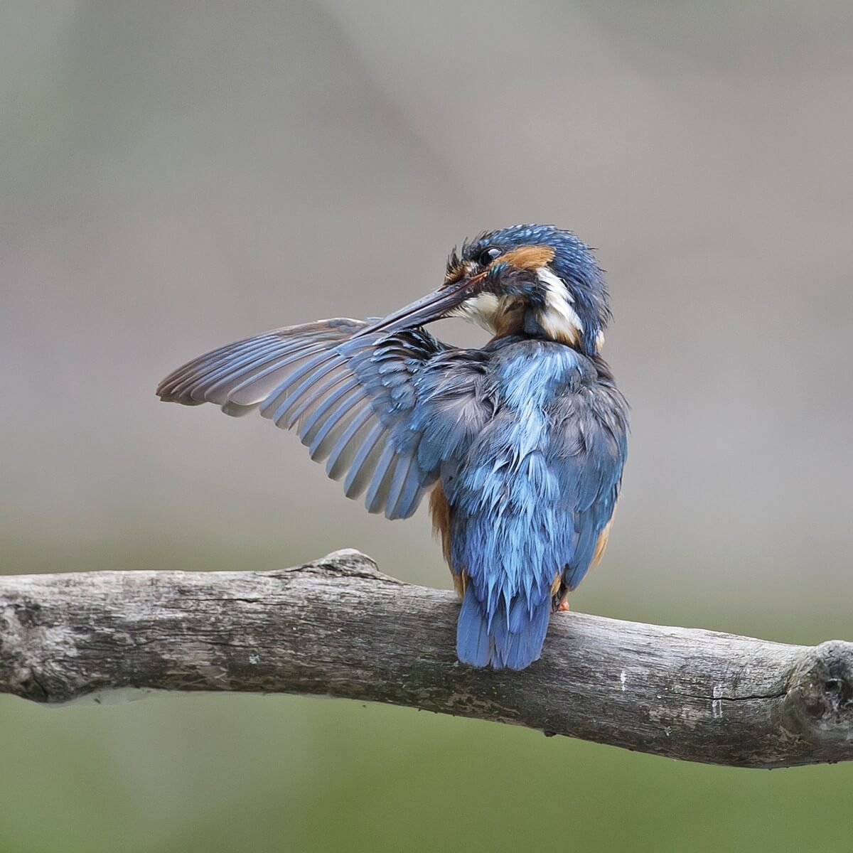 Le martin-pêcheur interrompt ses activités au minimum six fois par jour pour une séance de toilettage d’une vingtaine de minutes. Aucune coquetterie : toute saleté ou défaut de l’étanchéité du plumage représente une menace mortelle. L’oiseau commence par trois à quatre plongeons dans l’eau avant de se poser sur un perchoir. Puis, avec son bec, il lisse et graisse toutes ses plumes, mais vraiment toutes… quitte à prendre de drôles de positions.