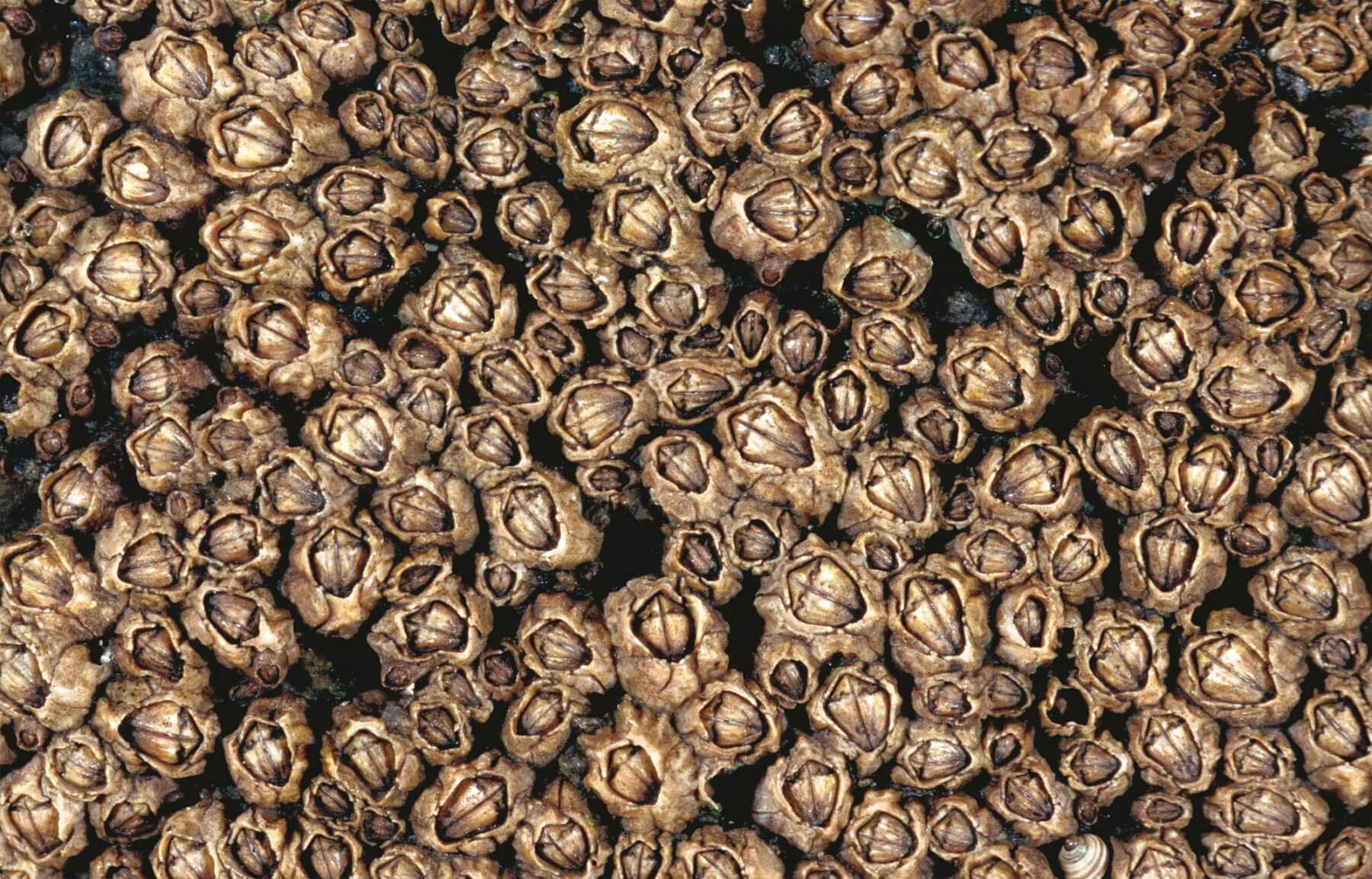 A marée basse, la balane rentre ses tentacules. Ce crustacé conique fixé aux rochers supporte des températures supérieures à 40 °C. Pour survivre, les balanes ferment hermétiquement leurs plaques articulées. Quand on se promène, on peut entendre le bruit des bulles d’air qui éclatent en s’échappant de ces cuirasses.