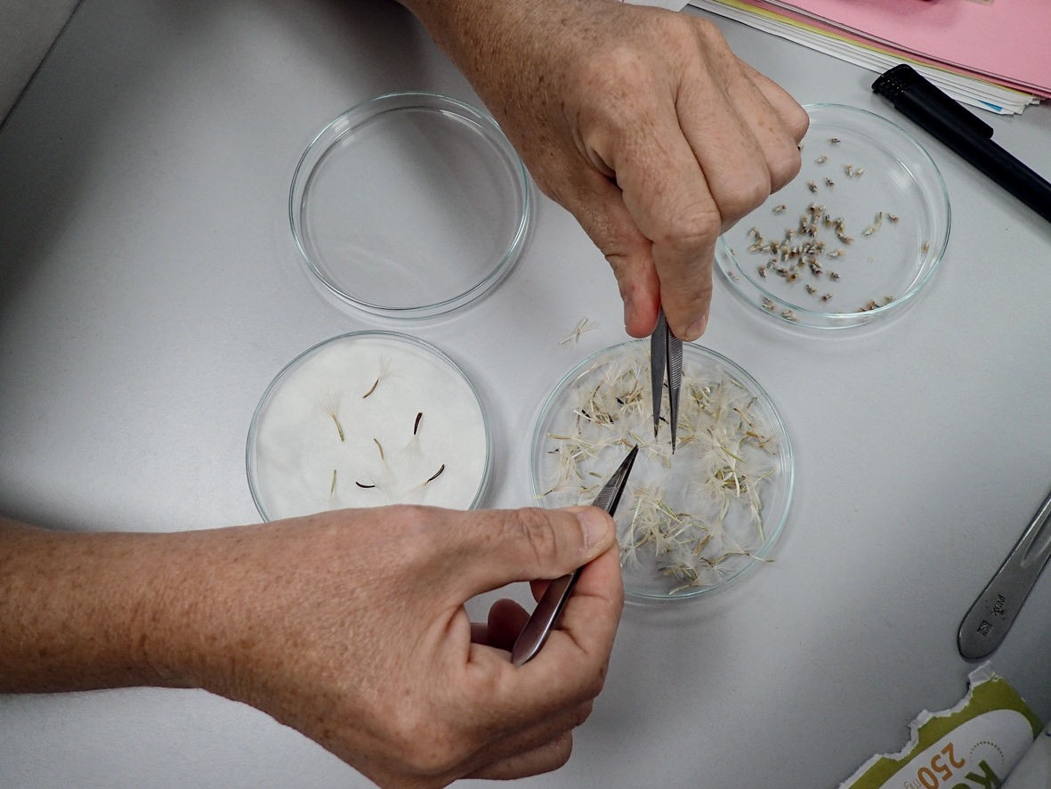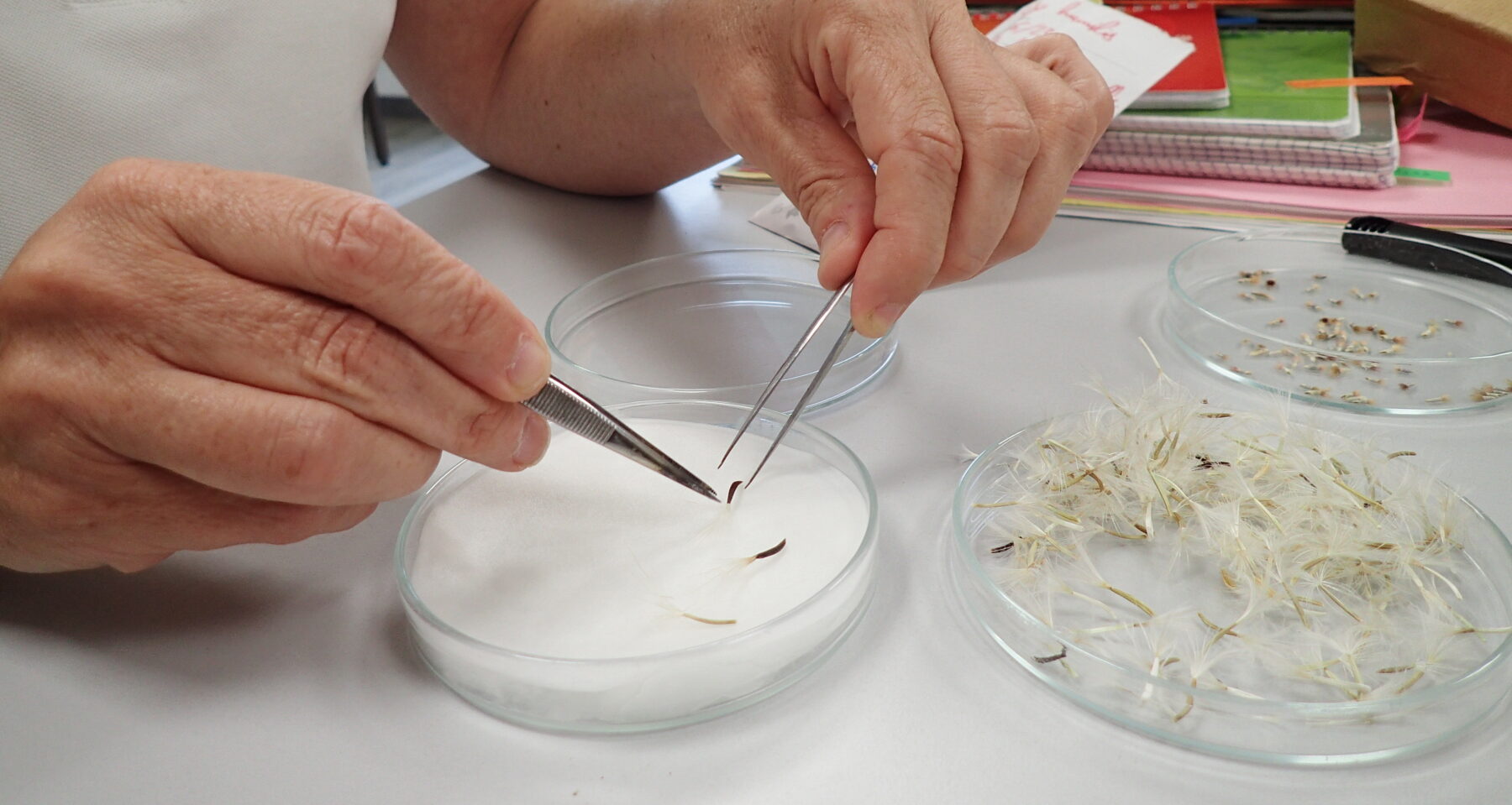 « Contrairement aux banques de graines agronomiques, je ne sélectionne pas les plus grosses : toutes ont leur chance et participent à la diversité de l’espèce. À la seule condition qu’elles soient capables de germer », explique la botaniste tout en coupant quelques semences afin d’évaluer à la loupe binoculaire leurs réserves nutritives, signe de viabilité.
