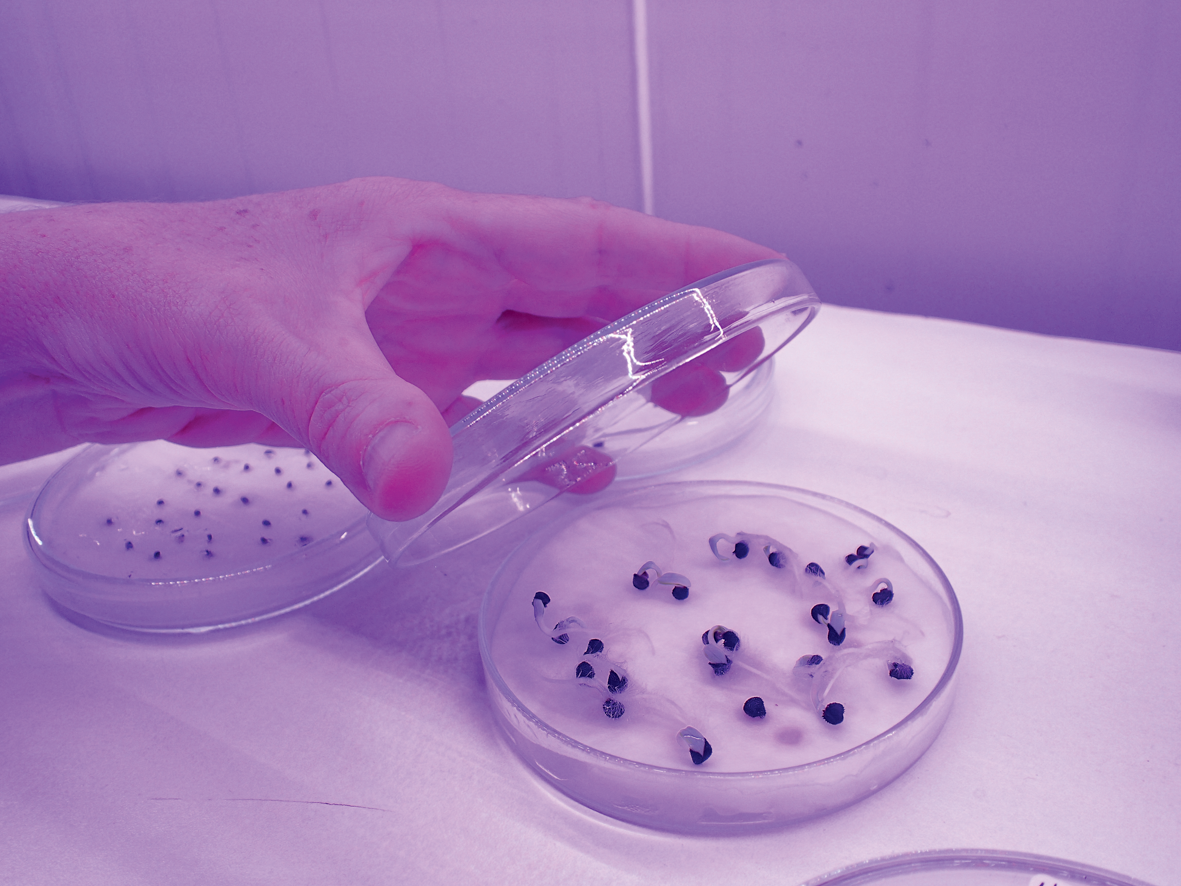 Après avoir accoutumé quelques graines à l’air ambiant, la botaniste les transfère à la pince dans une boîte de Petri, sur un coton humide. La soucoupe de verre rejoint une chambre de culture où la température et la lumière sont adaptées à l’éveil des plantules. « La sortie du frigo est une manière de dire aux semences : réveille-toi, c’est le printemps », sourit la scientifique. Certaines dormeuses demandent des subterfuges supplémentaires : une alternance de températures, divers réglages d’humidité et de lumière ou encore un passage au papier de verre. « Mais parfois la nature garde secrète la formule magique. Pour la fritillaire pintade, je n’ai pas trouvé la recette en laboratoire, mais il suffit de faire un semis en terreau et la réussite est totale ! Ce grand mystère est magique », s’émerveille Bertille.
