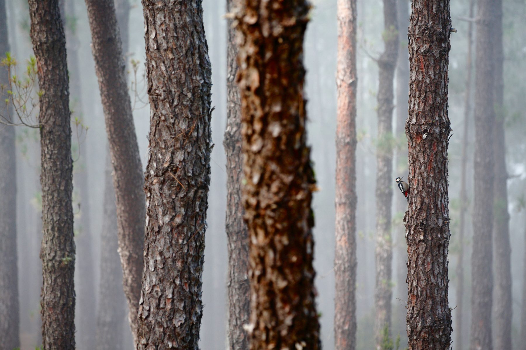 “J’ai tout de suite aimé cette ambiance minimaliste, l’atmosphère de cette forêt de pins plongée dans le brouillard. Il faut un peu le chercher, le pic épeiche ! C’est comme cela que tu le vois en vrai, à l’œil nu ou dans tes jumelles. Il y a dix ans, on aurait primé un gros plan à coup sûr, mais aujourd’hui la poésie a toute sa place dans la photographie nature.