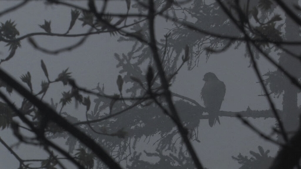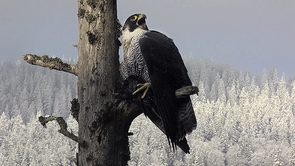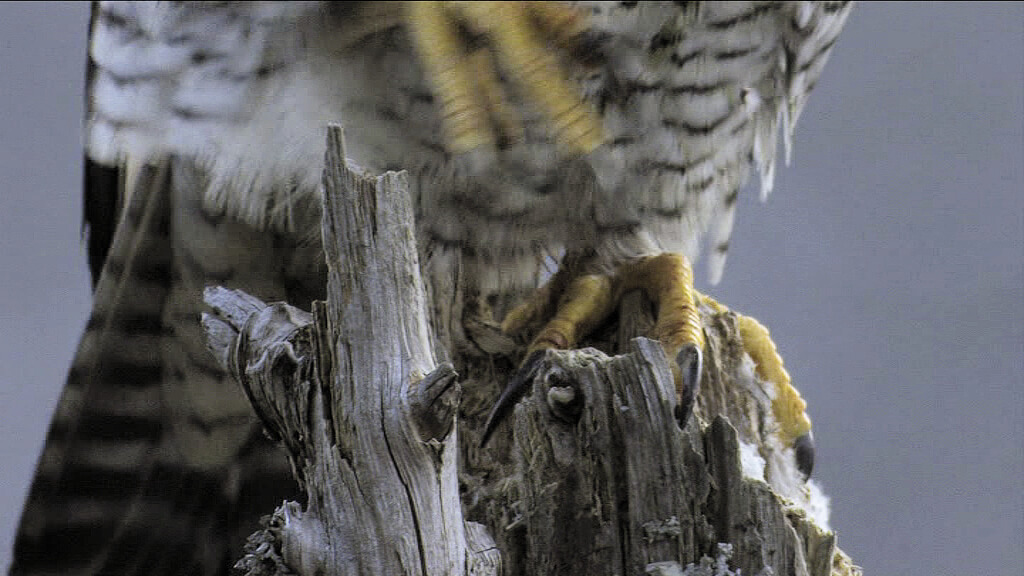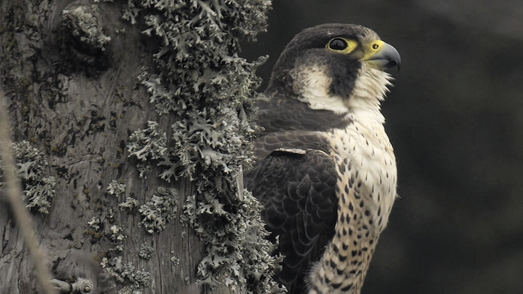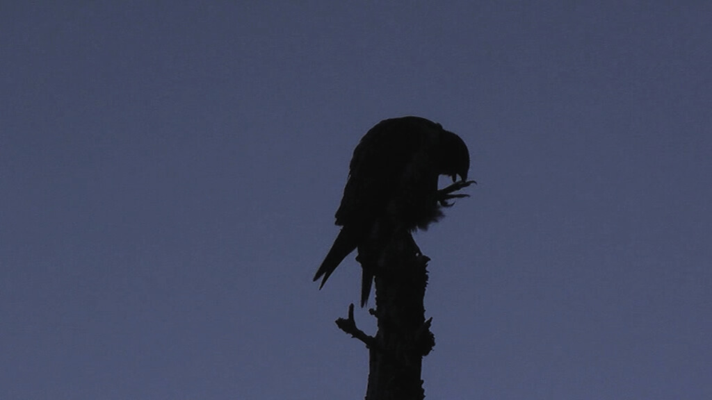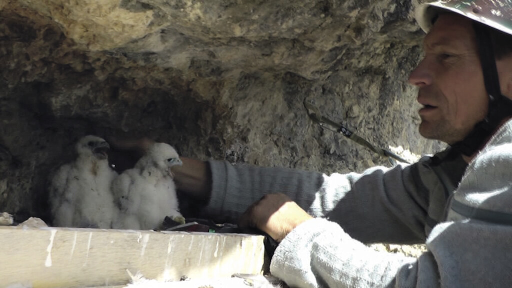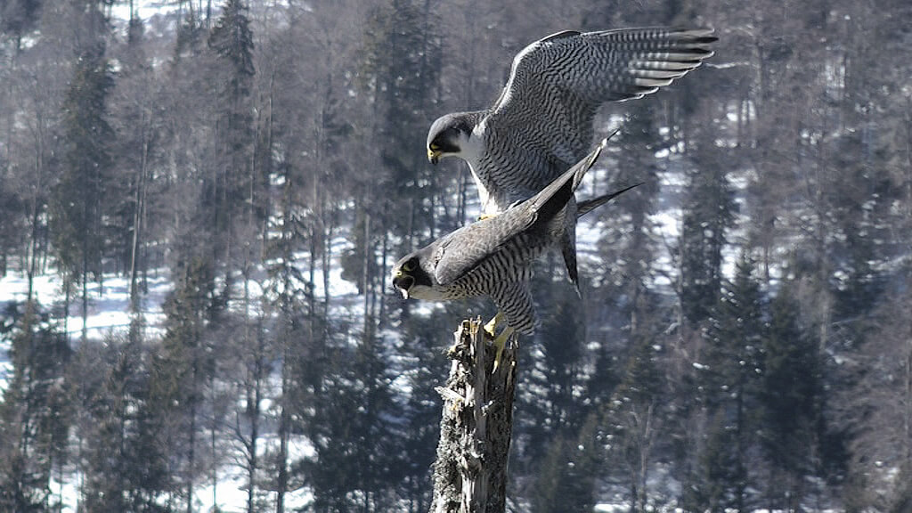 Beaucoup de séquences du film montrent le faucon pèlerin sur son perchoir favori. Posé sur un épicéa sec dans la falaise, l'oiseau ressemble à une sorte de gardien. Il surveille ses proies, mais ce n'est pas tout.